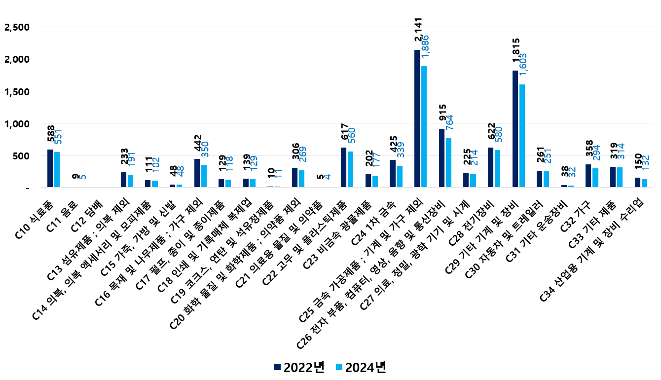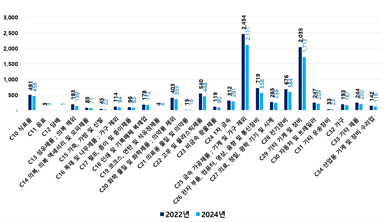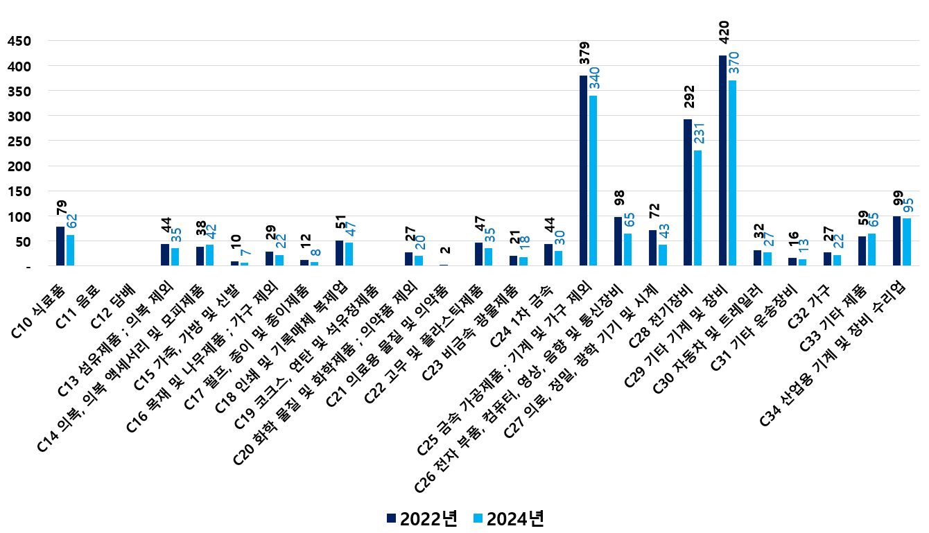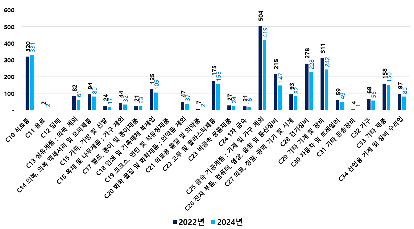 2) 2022 ~ 2024년 업종별 제조사업체 현황