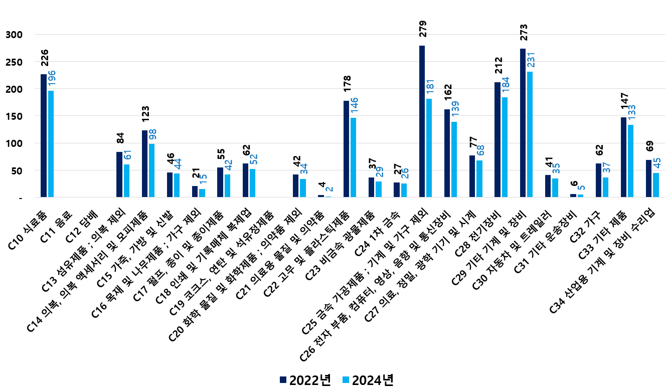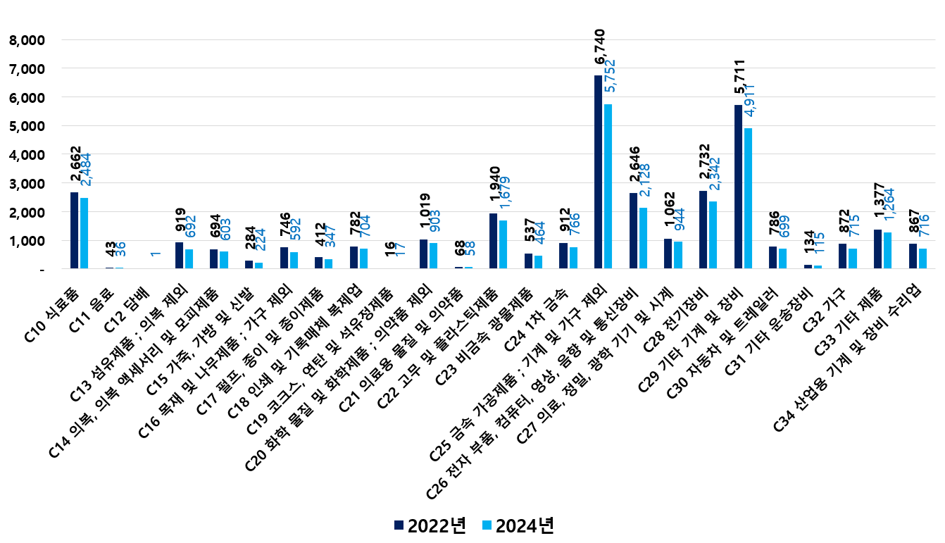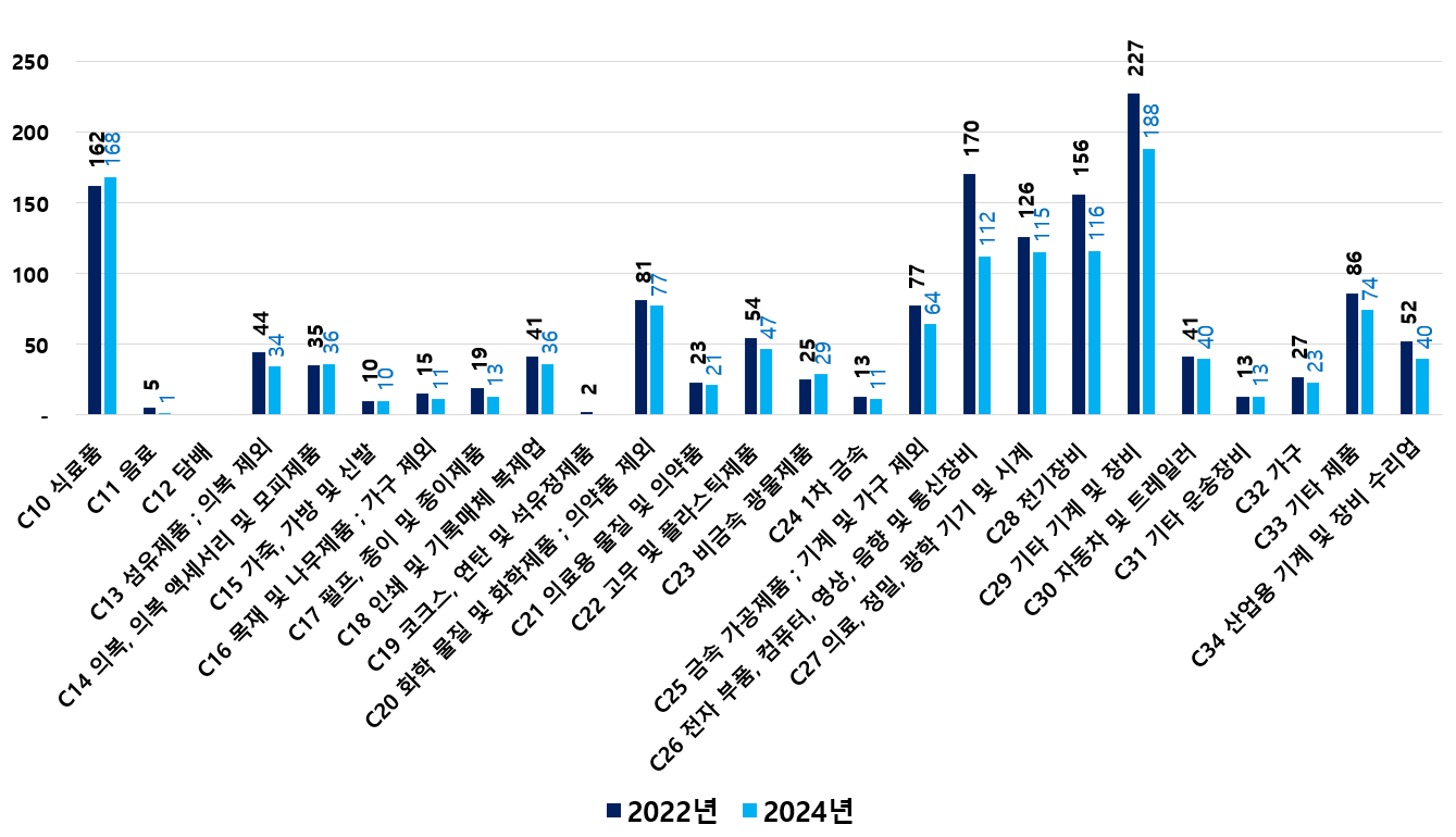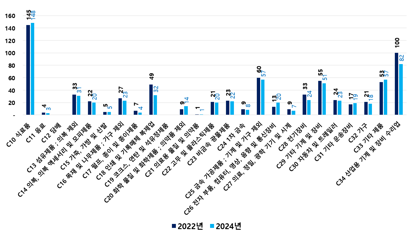 2) 2022 ~ 2024년 업종별 제조사업체 현황