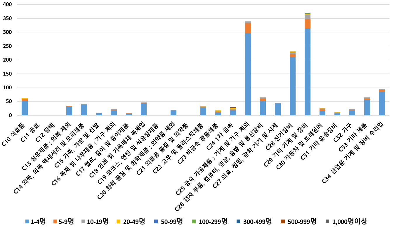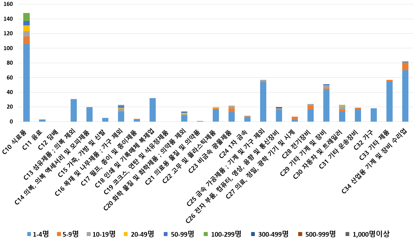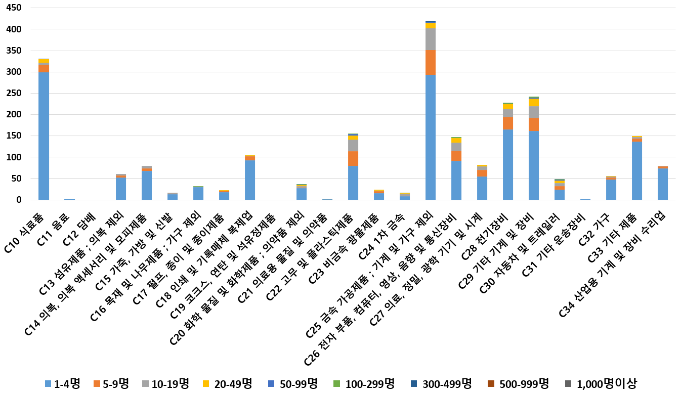 1) 업종별 · 근로자수별 제조사업체 현황