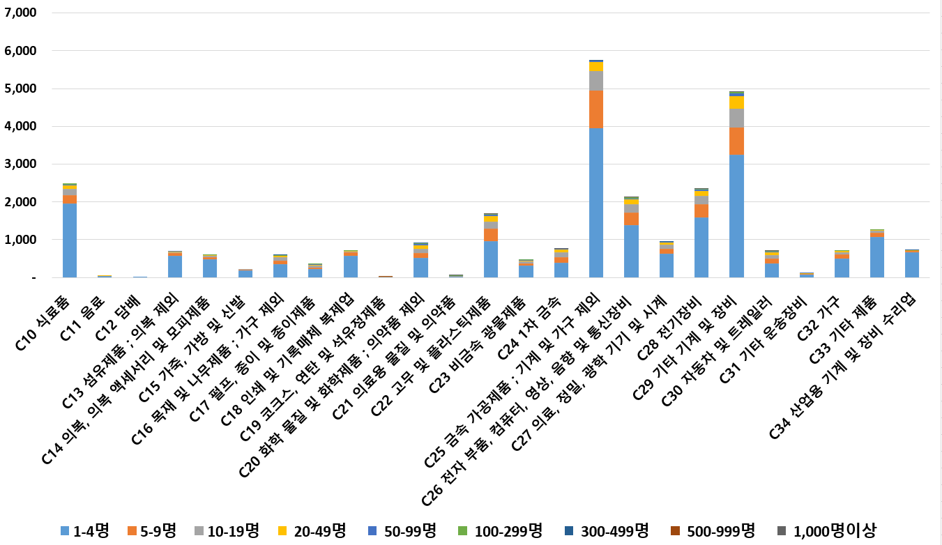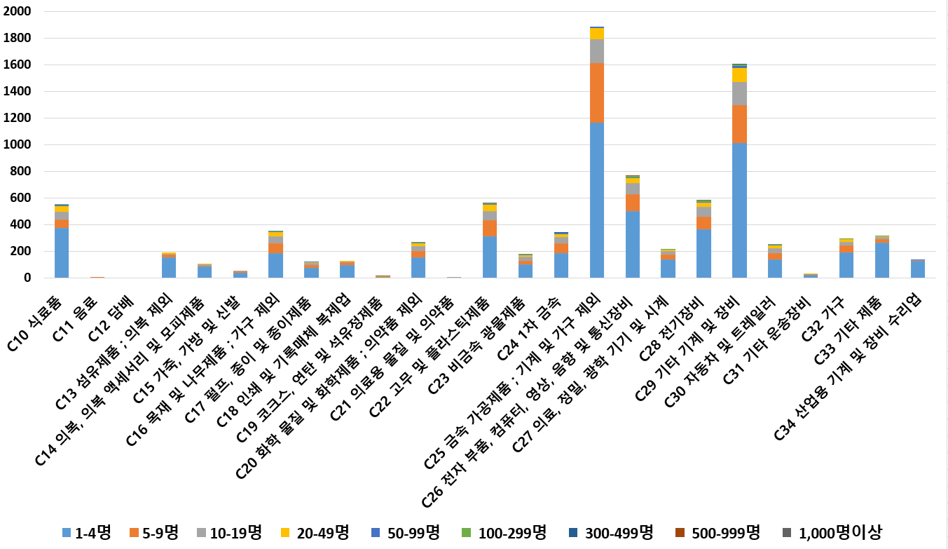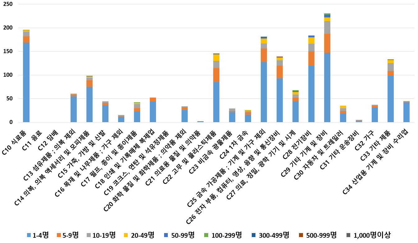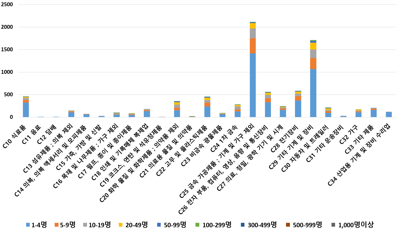 1) 업종별 · 근로자수별 제조사업체 현황