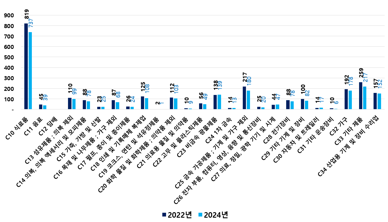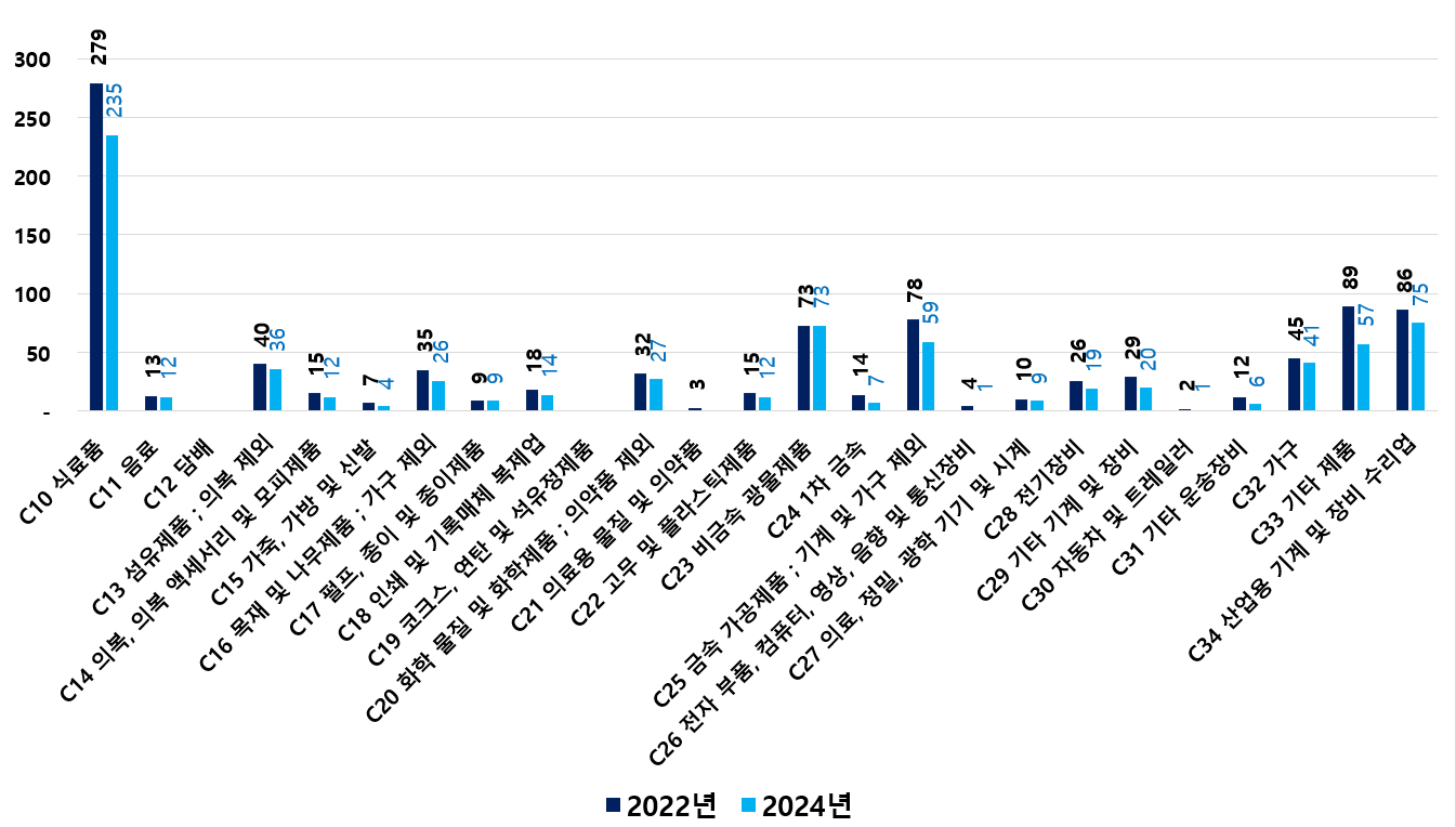 2) 2022 ~ 2024년 업종별 제조사업체 현황