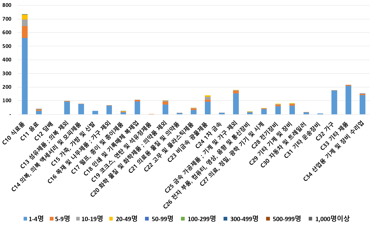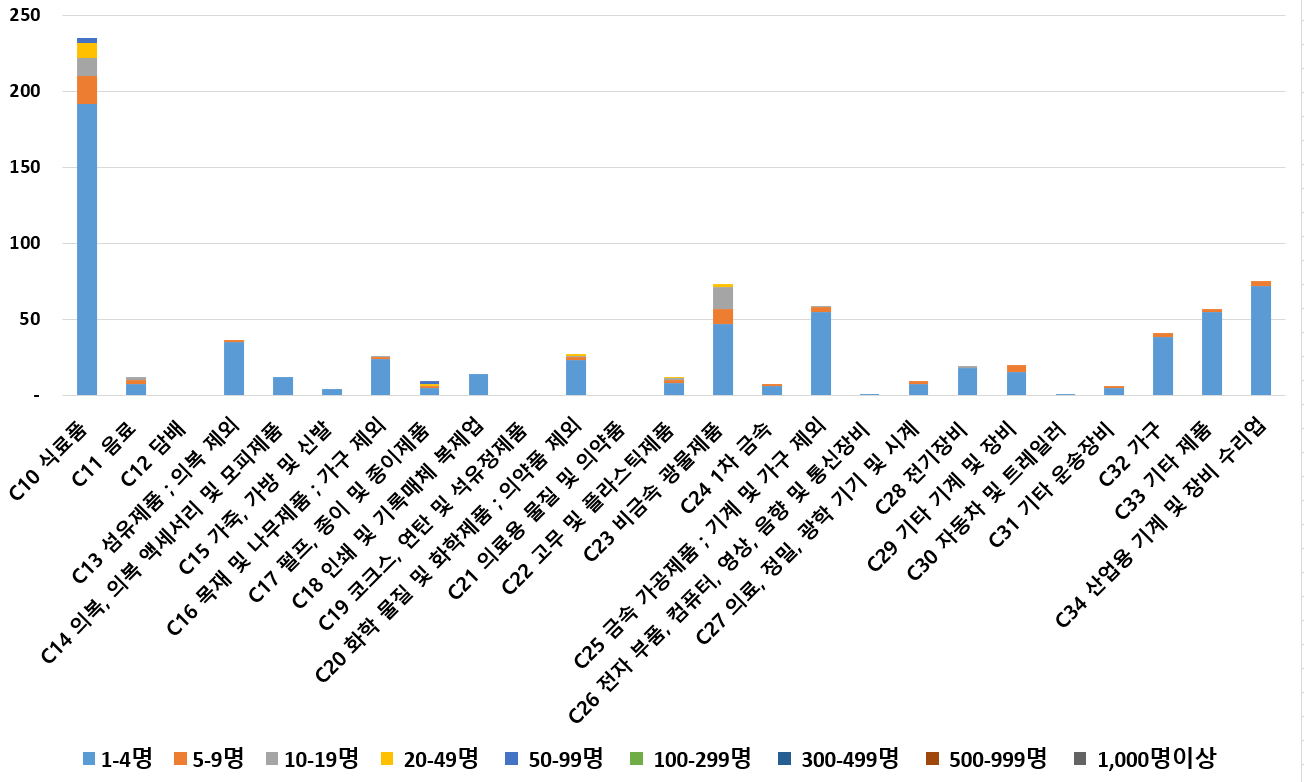 1) 업종별 · 근로자수별 제조사업체 현황