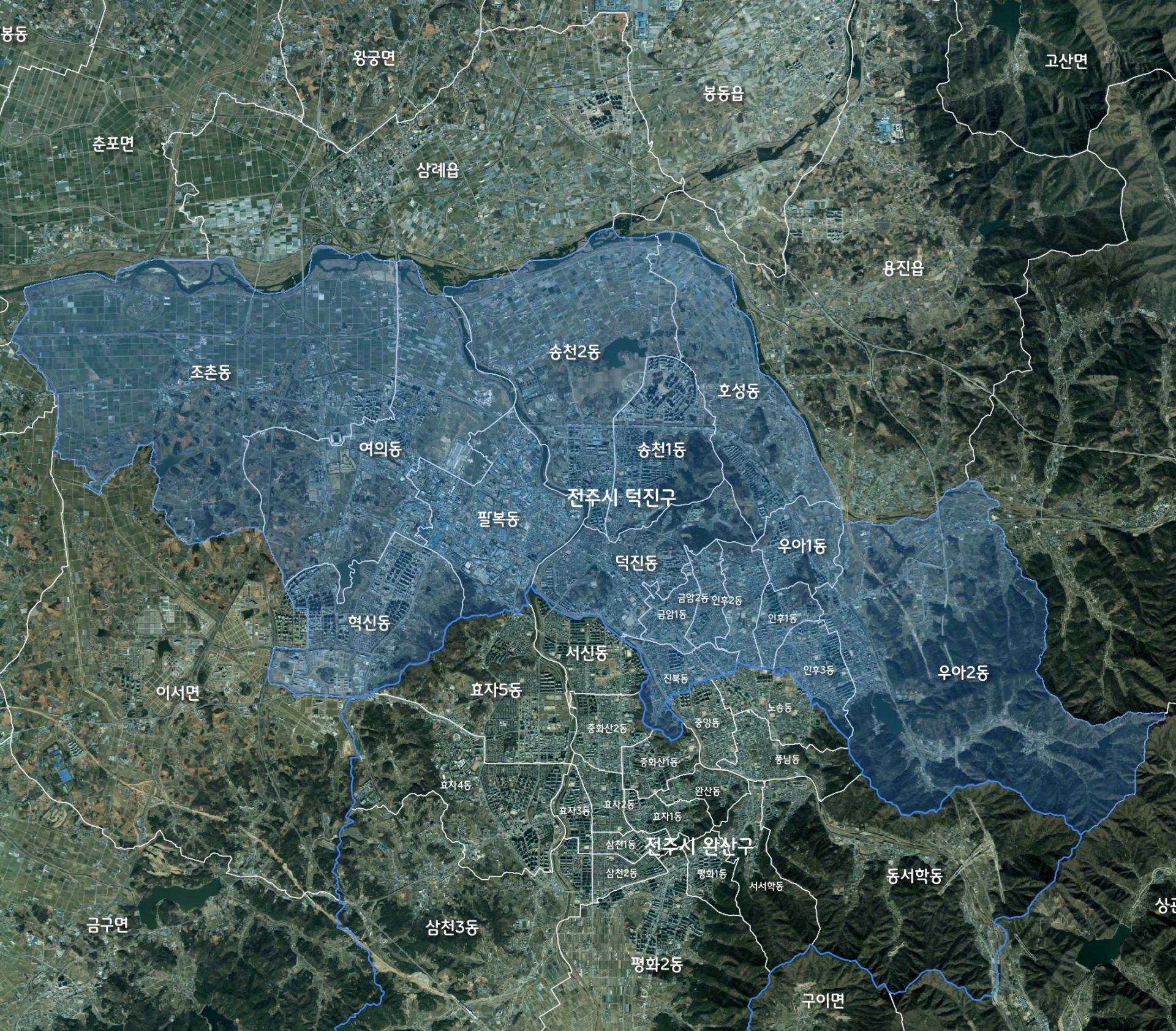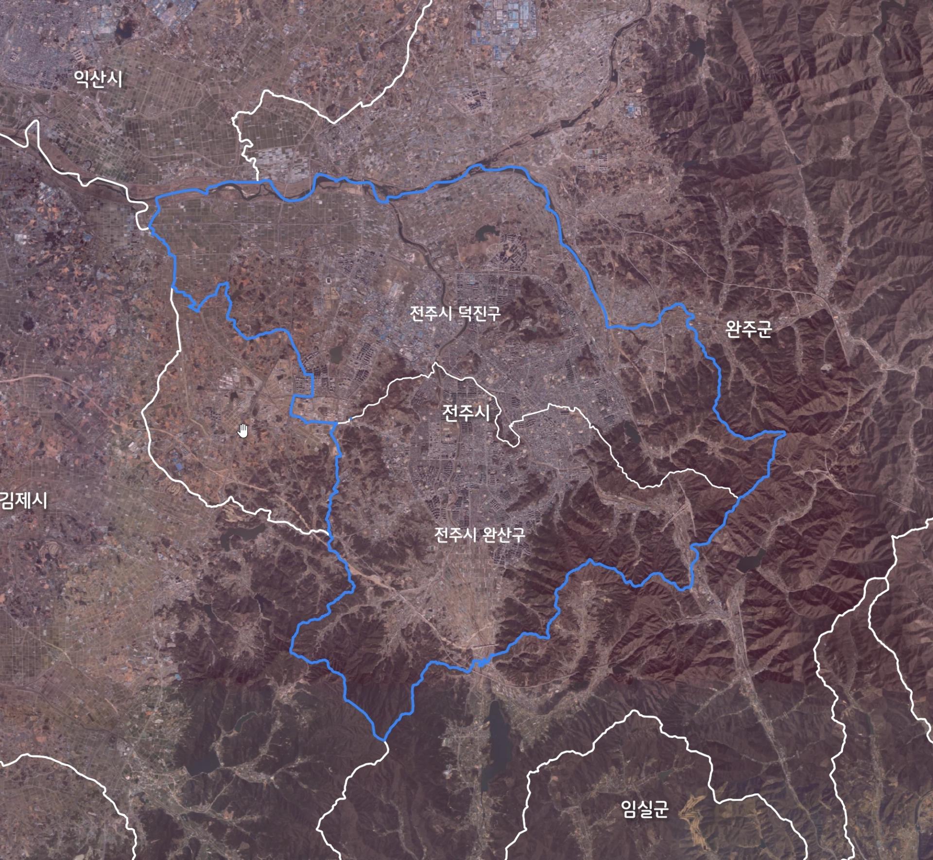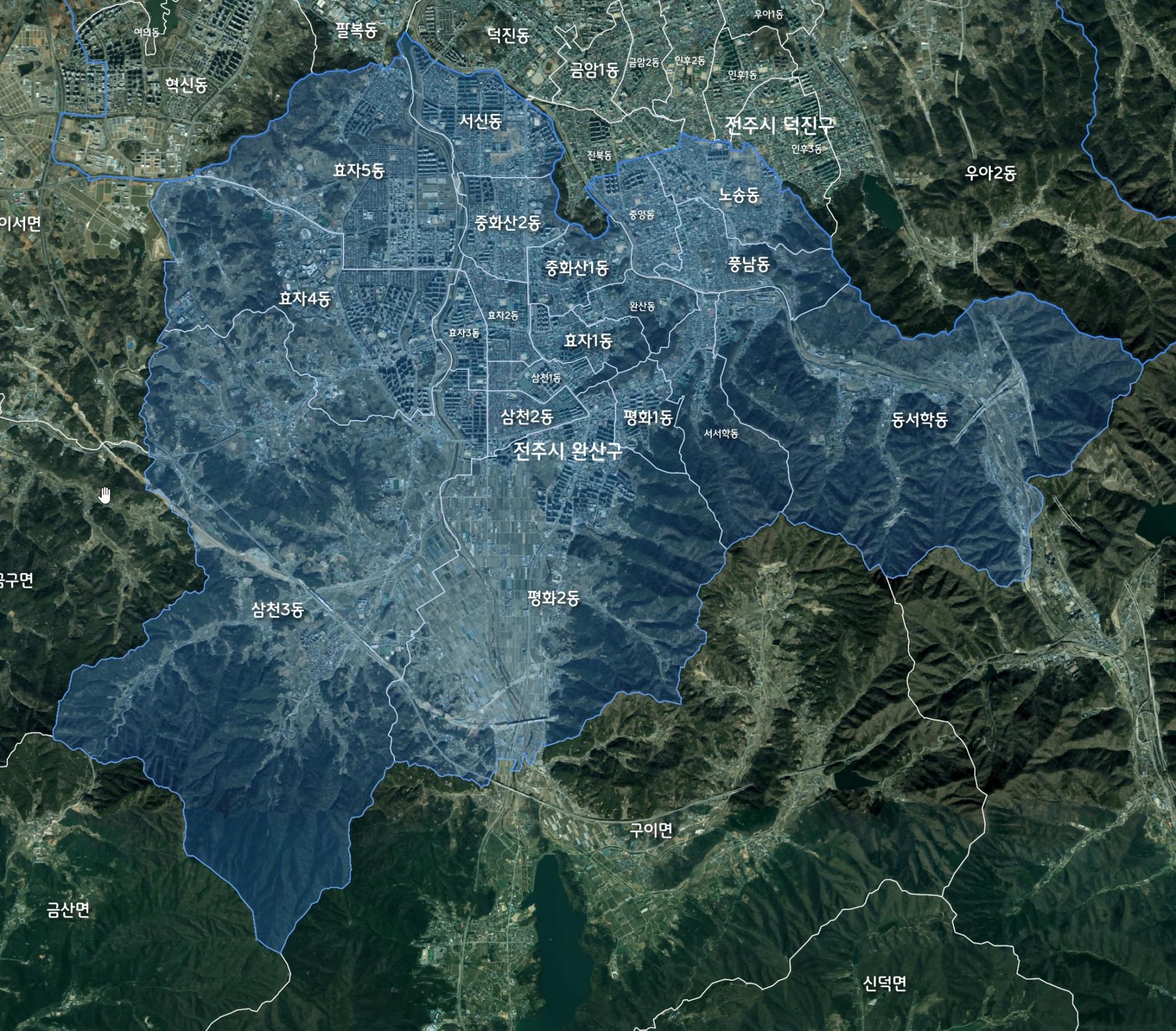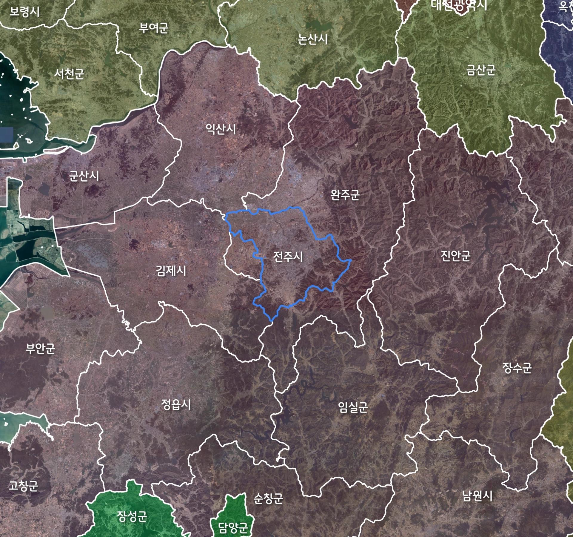 | 서울특별시 ( 605,214 ㎢*) | 전북 전주시 ( 205,988 ㎢, 서울 대비 34%) |
