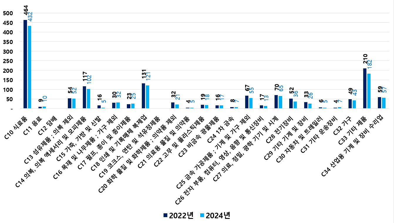 2) 2022 ~ 2024년 업종별 제조사업체 현황