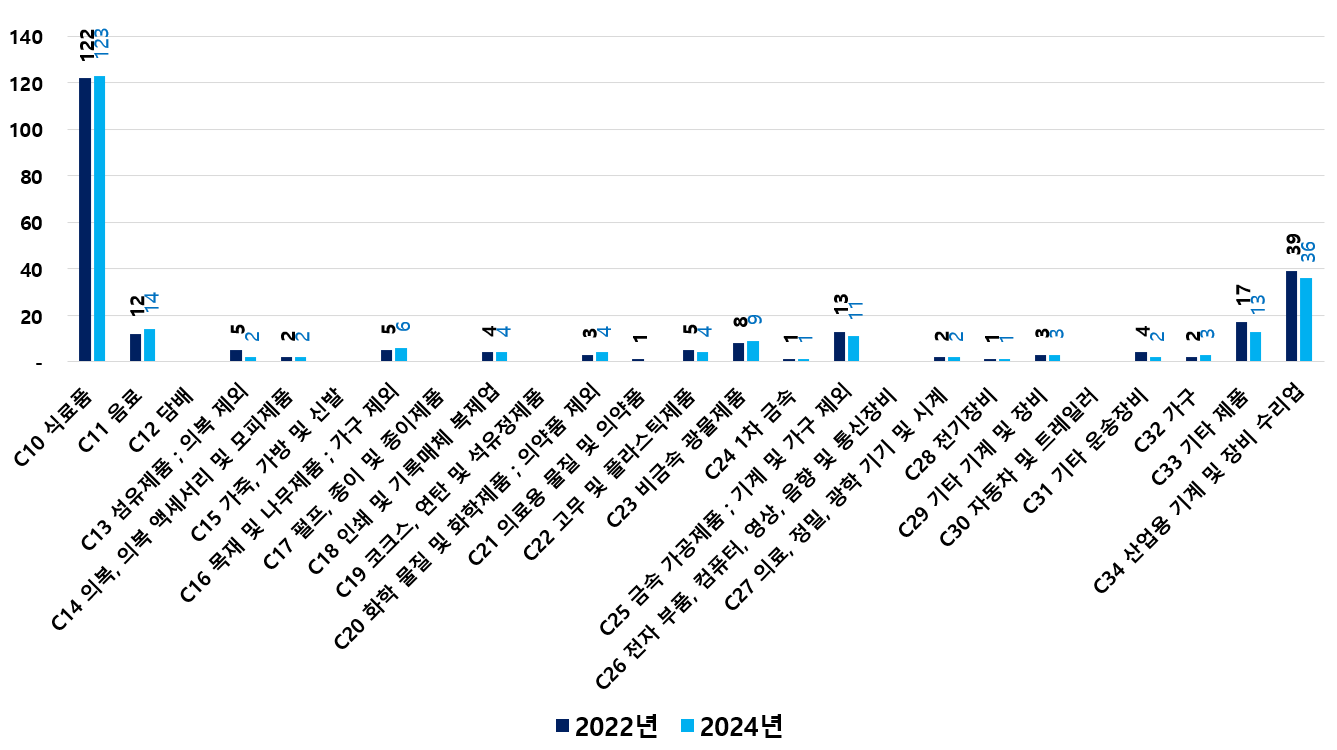 2) 2022 ~ 2024년 업종별 제조사업체 현황