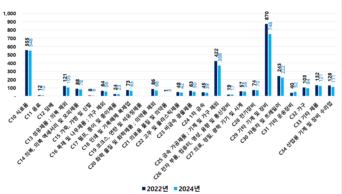 2) 2022 ~ 2024년 업종별 제조사업체 현황