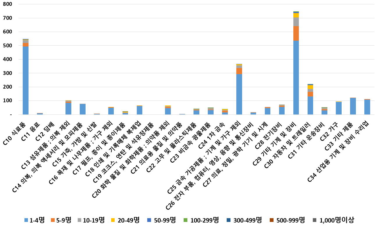 1) 업종별 · 근로자수별 제조사업체 현황