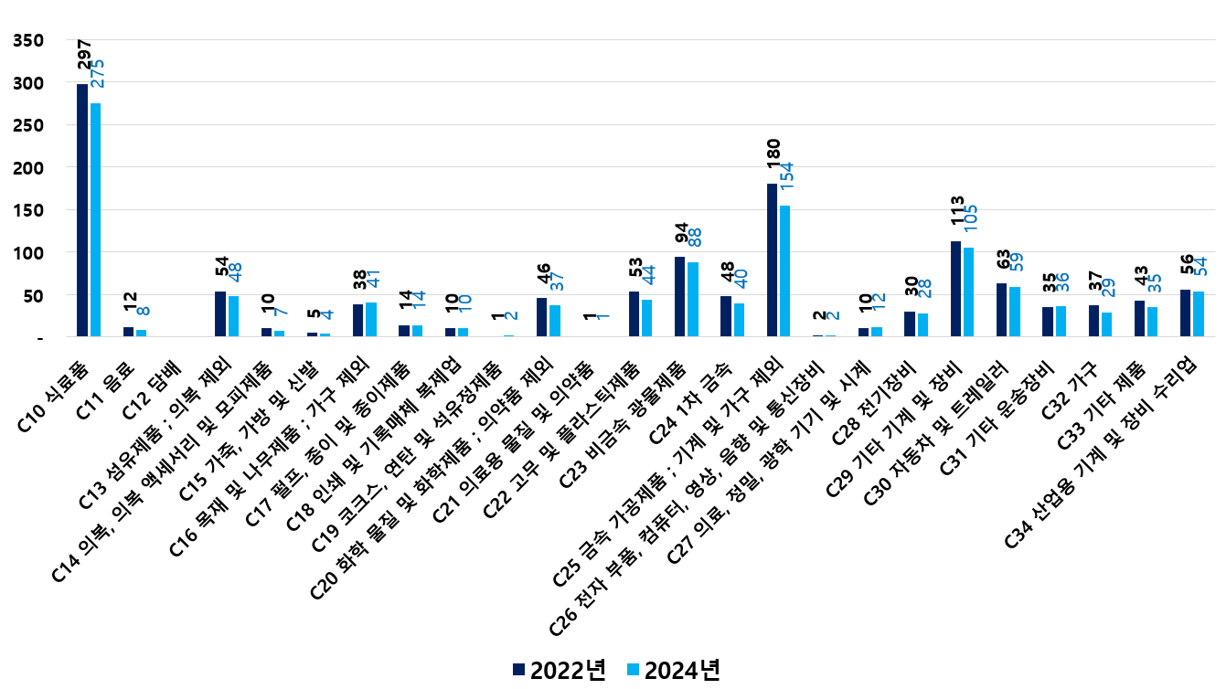 2) 2022 ~ 2024년 업종별 제조사업체 현황