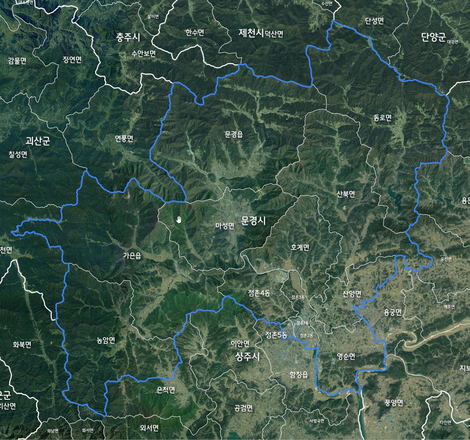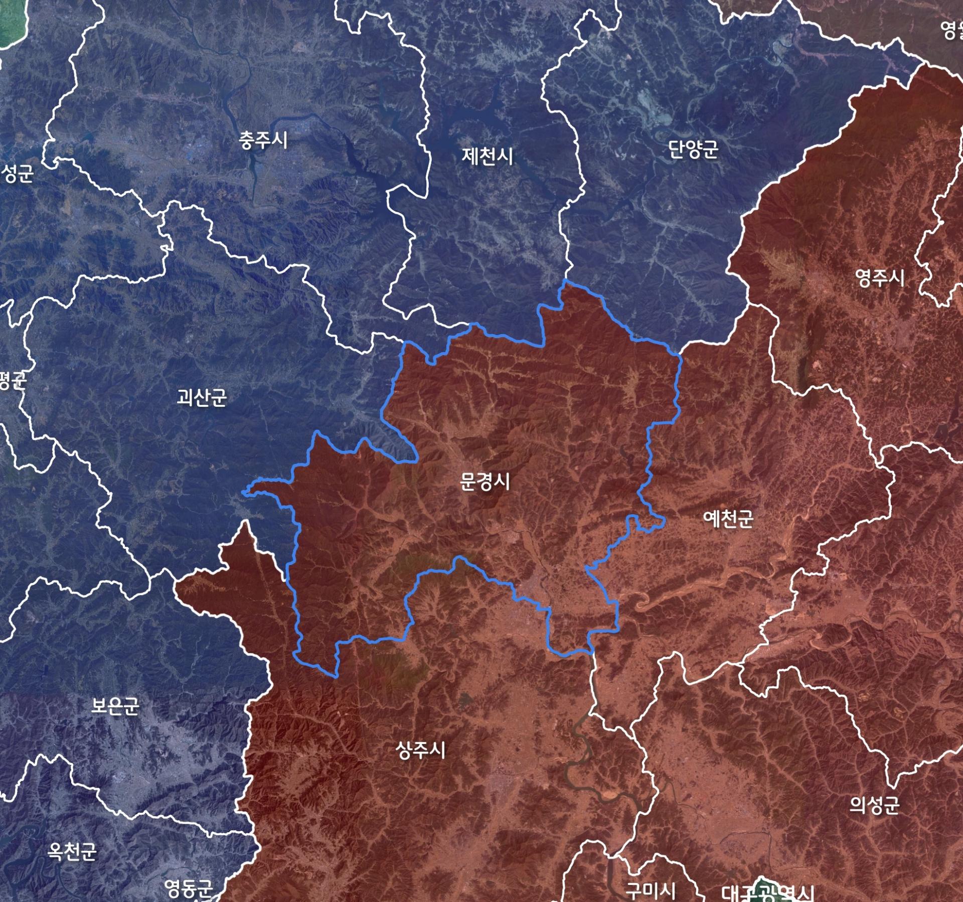 | 서울특별시 ( 605,214 ㎢*) | 경북 문경시 ( 912,069 ㎢, 서울 대비 151%) |
