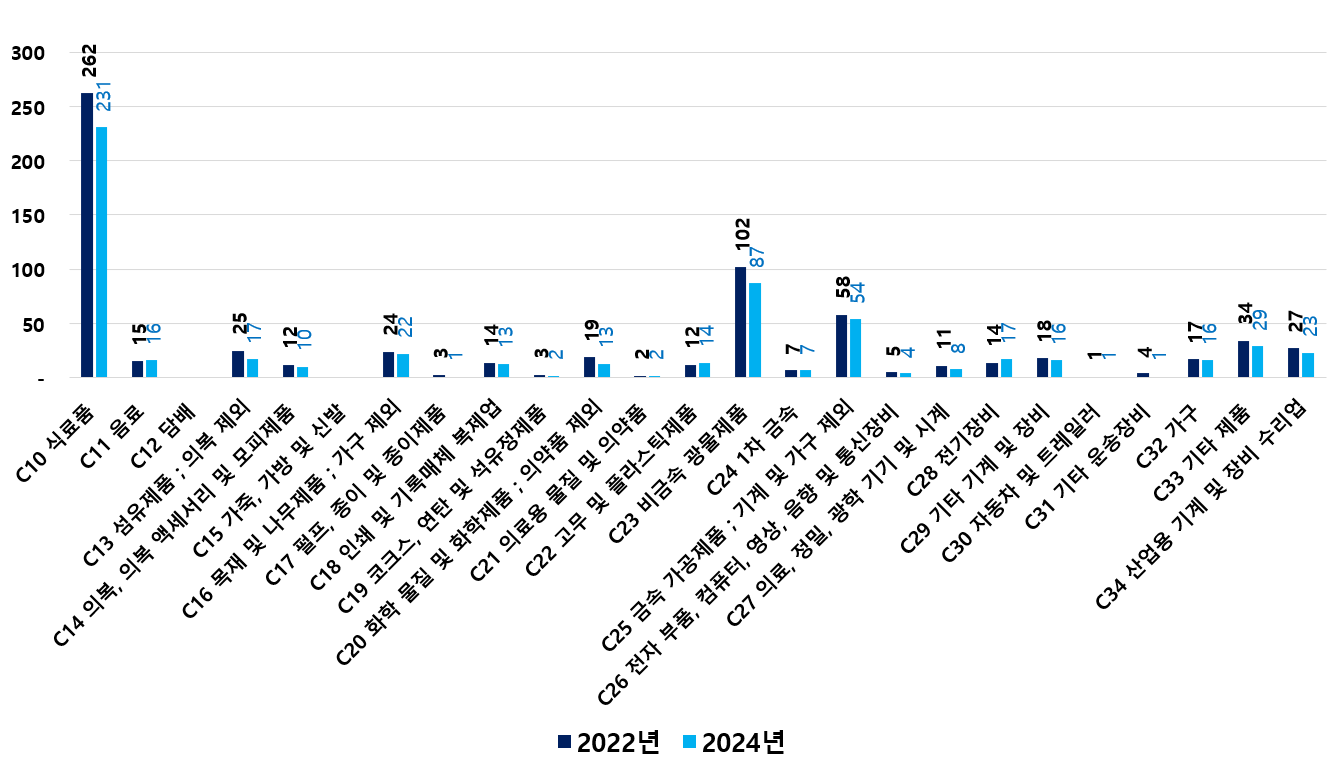 2) 2022 ~ 2024년 업종별 제조사업체 현황