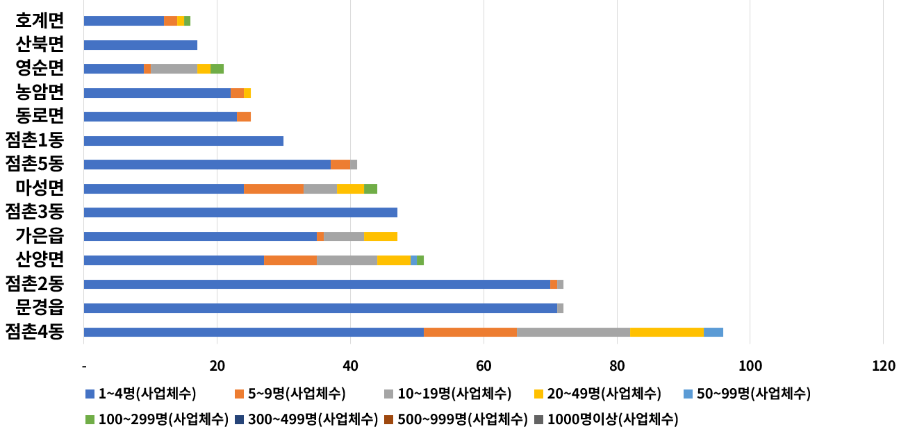 *** 공장 건축물이 없는 읍 · 면 · 동은 보통 반찬 등 식료품 제조, 인쇄소, 간판 제작소, 철공소 등 소규모 제조업이 '제조업소(2종근린생활시설 건축물의 한 용도)'에서 사업함. 수도권, 광역시 등에는 제조업소 외 '지식산업센터(구 아파트형 공장)'에도 다수의 제조사업체 있음