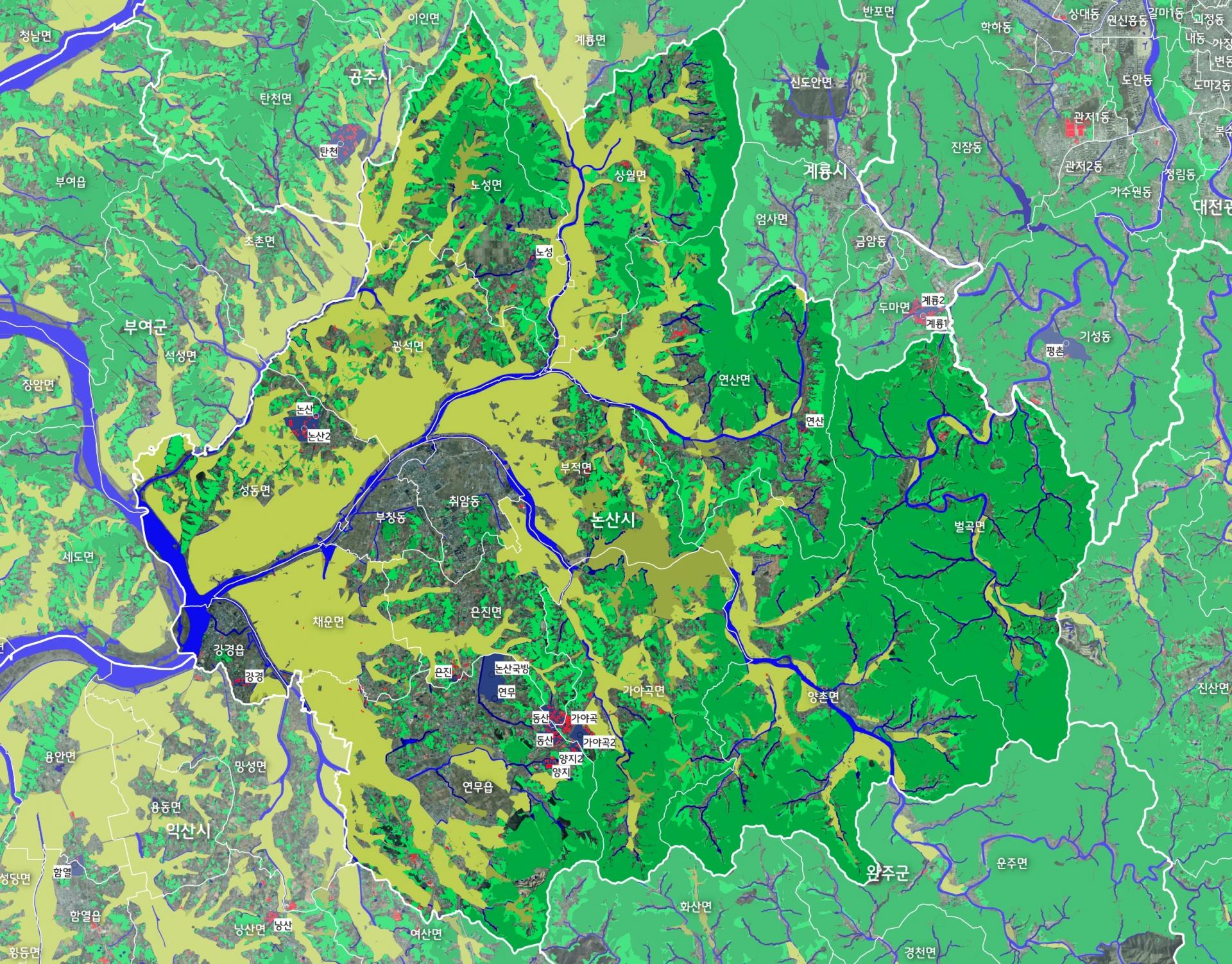 * (참고) 흰색 네모 배경이 있는 글씨는 산업단지임. 새로 지정된 일부 산업단지는 미표시