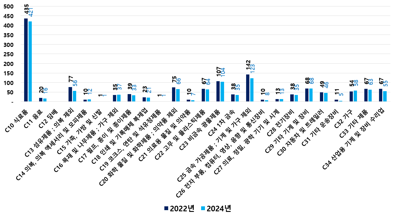 2) 2022 ~ 2024년 업종별 제조사업체 현황