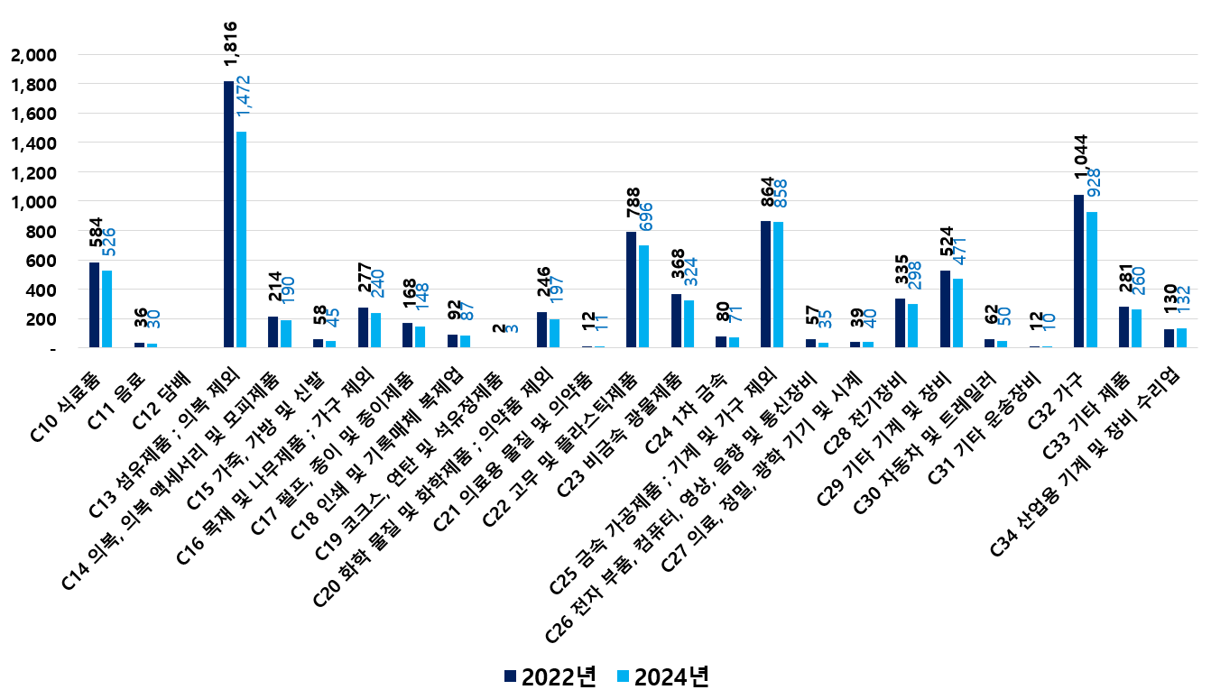 2) 2022 ~ 2024년 업종별 제조사업체 현황