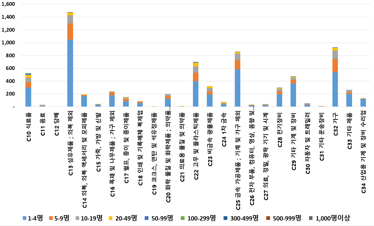 1) 업종별 · 근로자수별 제조사업체 현황