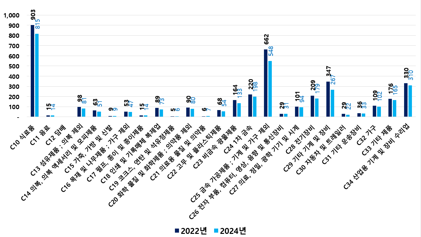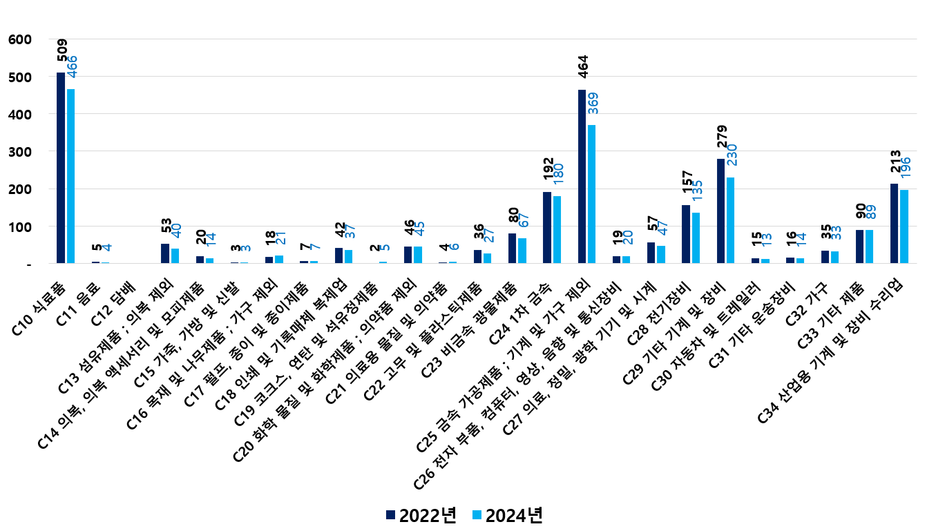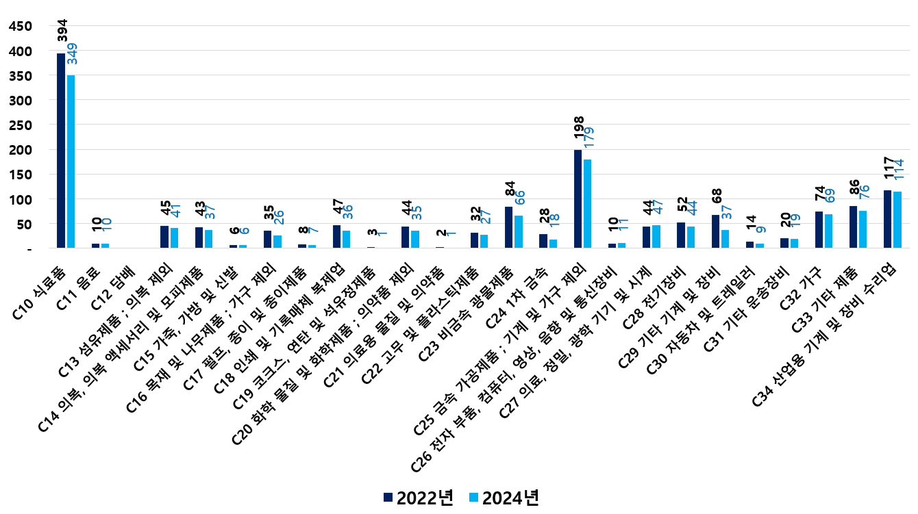 2) 2022 ~ 2024년 업종별 제조사업체 현황