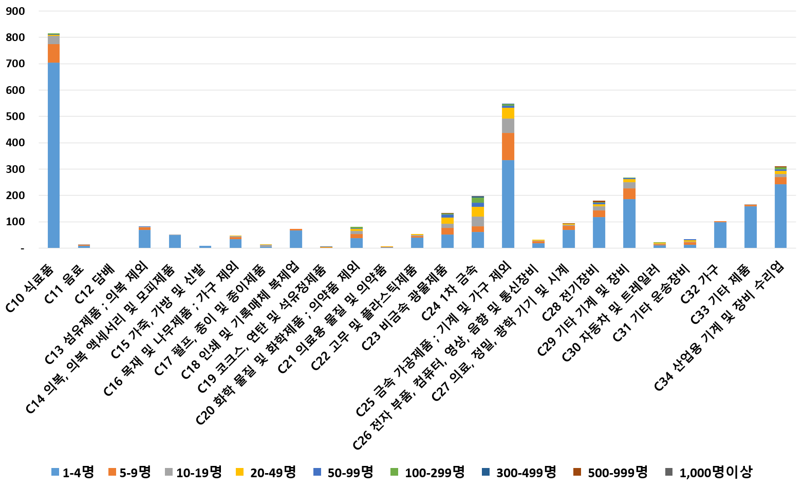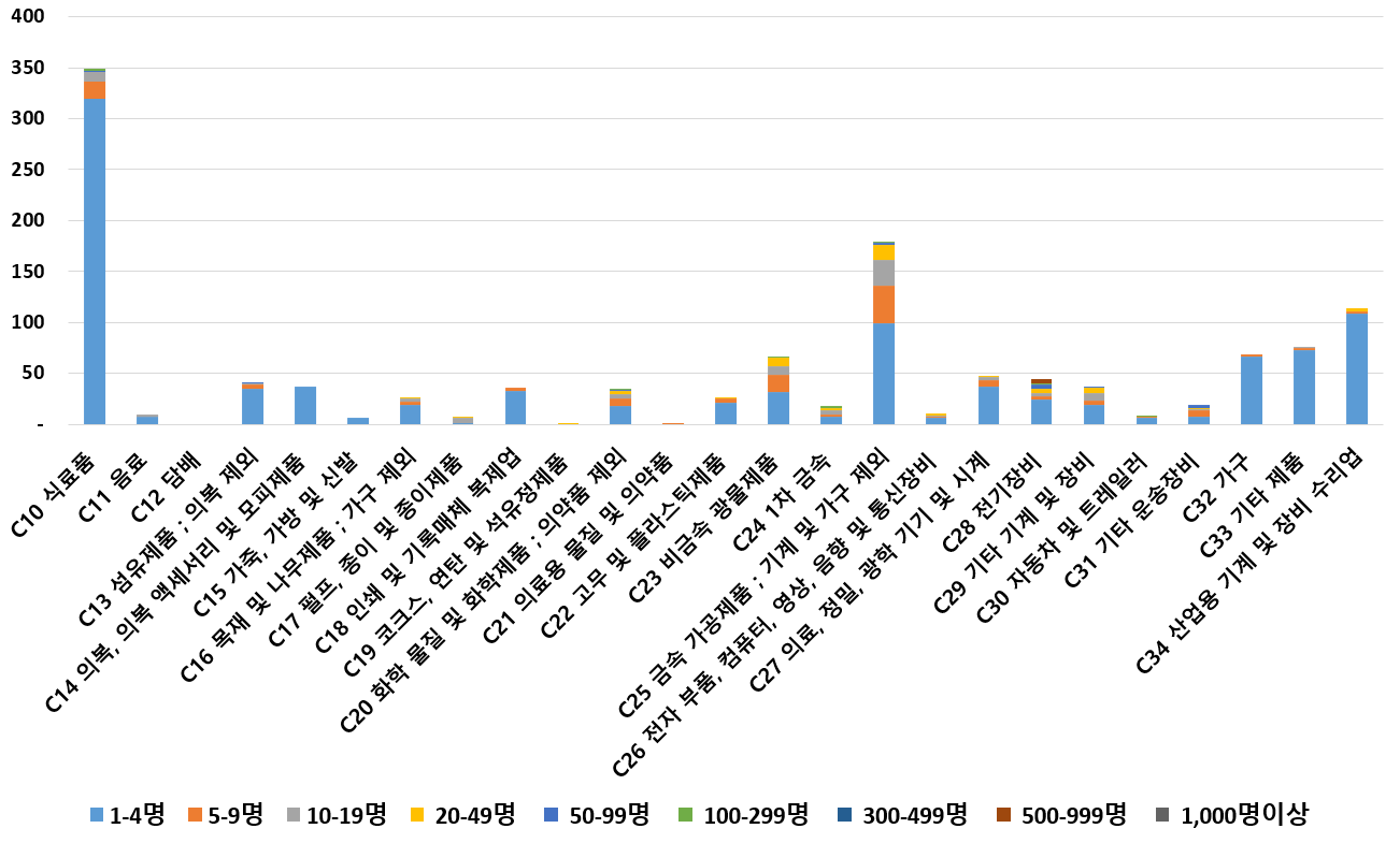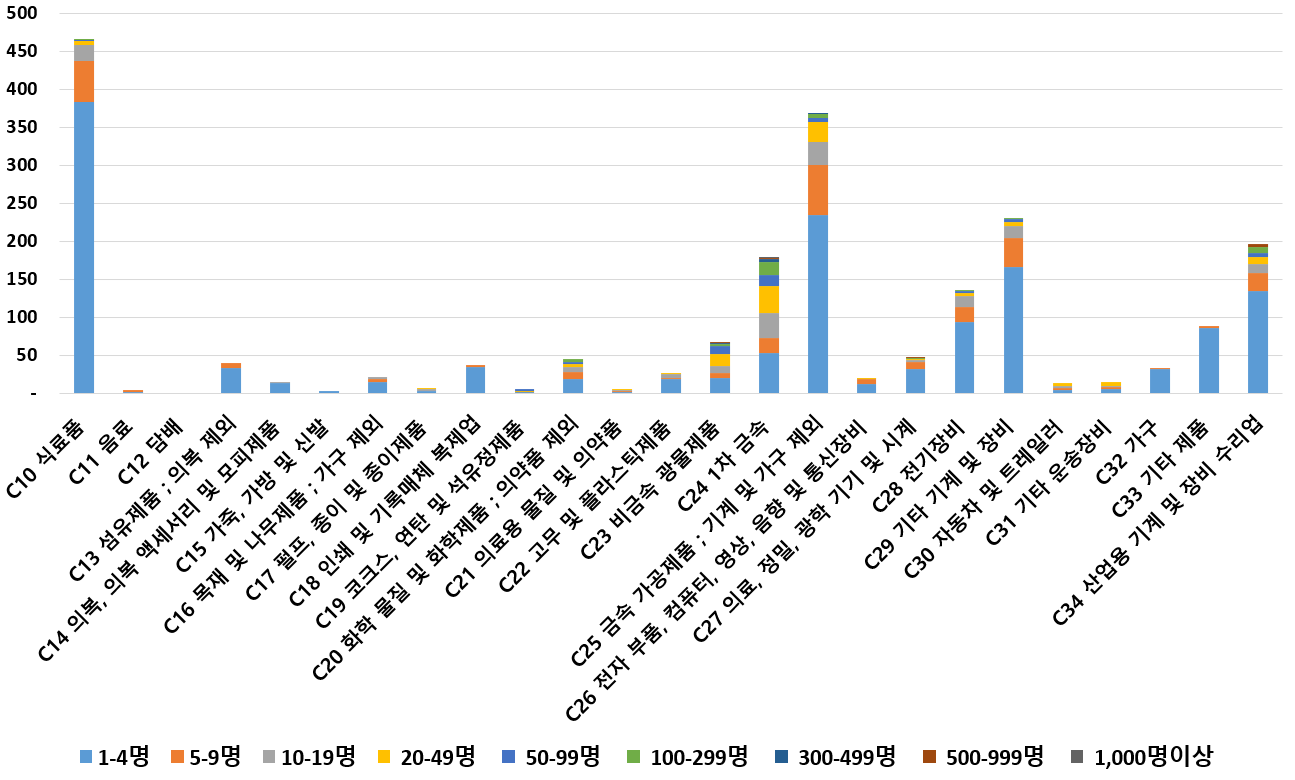 1) 업종별 · 근로자수별 제조사업체 현황