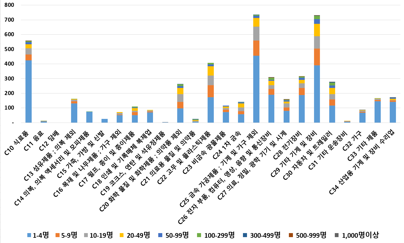 1) 업종별 · 근로자수별 제조사업체 현황