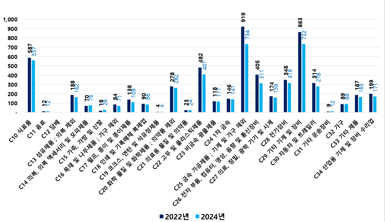 2) 2022 ~ 2024년 업종별 제조사업체 현황
