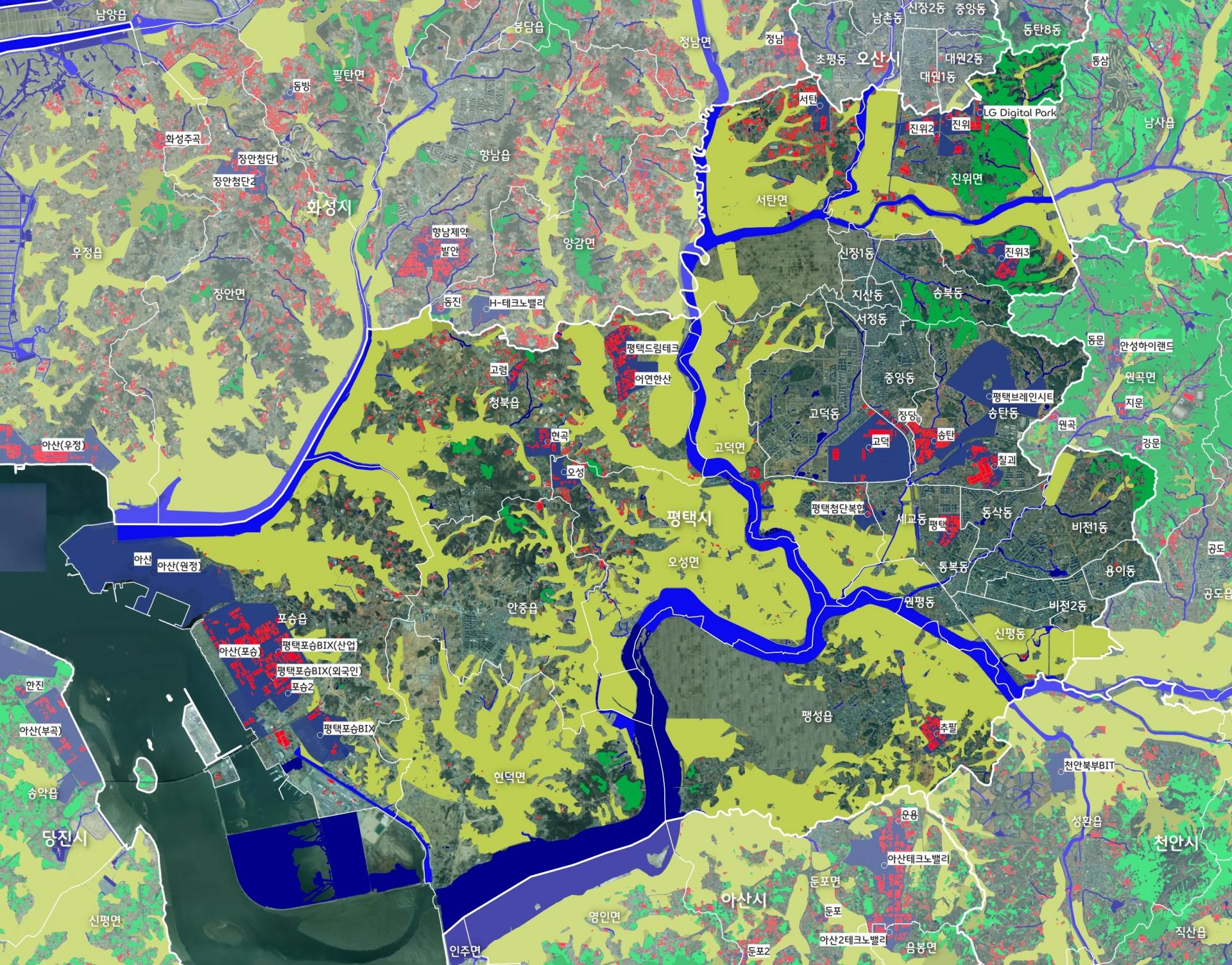 * (참고) 흰색 네모 배경이 있는 글씨는 산업단지임. 새로 지정된 일부 산업단지는 미표시
