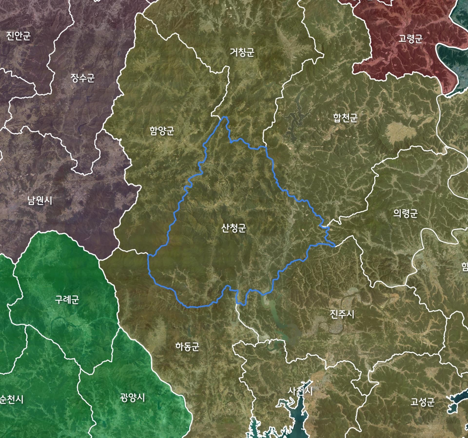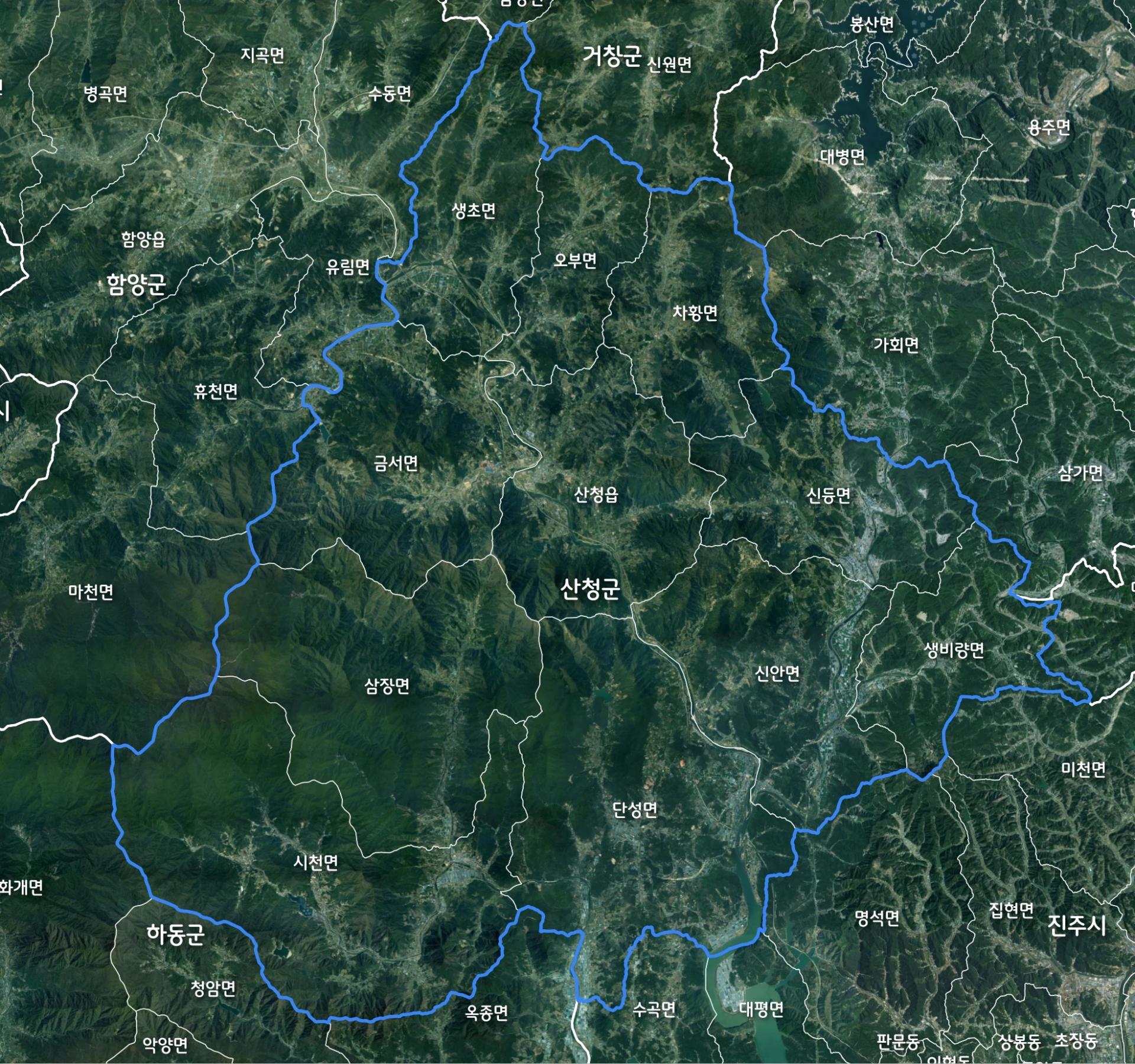 | 서울특별시 ( 605,214 ㎢*) | 경남 산청군 ( 794,730 ㎢, 서울 대비 131%) |