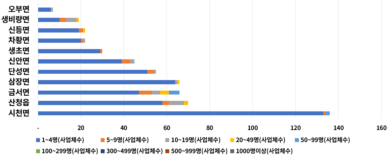 *** 공장 건축물이 없는 읍 · 면 · 동은 보통 반찬 등 식료품 제조, 인쇄소, 간판 제작소, 철공소 등 소규모 제조업이 '제조업소(2종근린생활시설 건축물의 한 용도)'에서 사업함. 수도권, 광역시 등에는 제조업소 외 '지식산업센터(구 아파트형 공장)'에도 다수의 제조사업체 있음