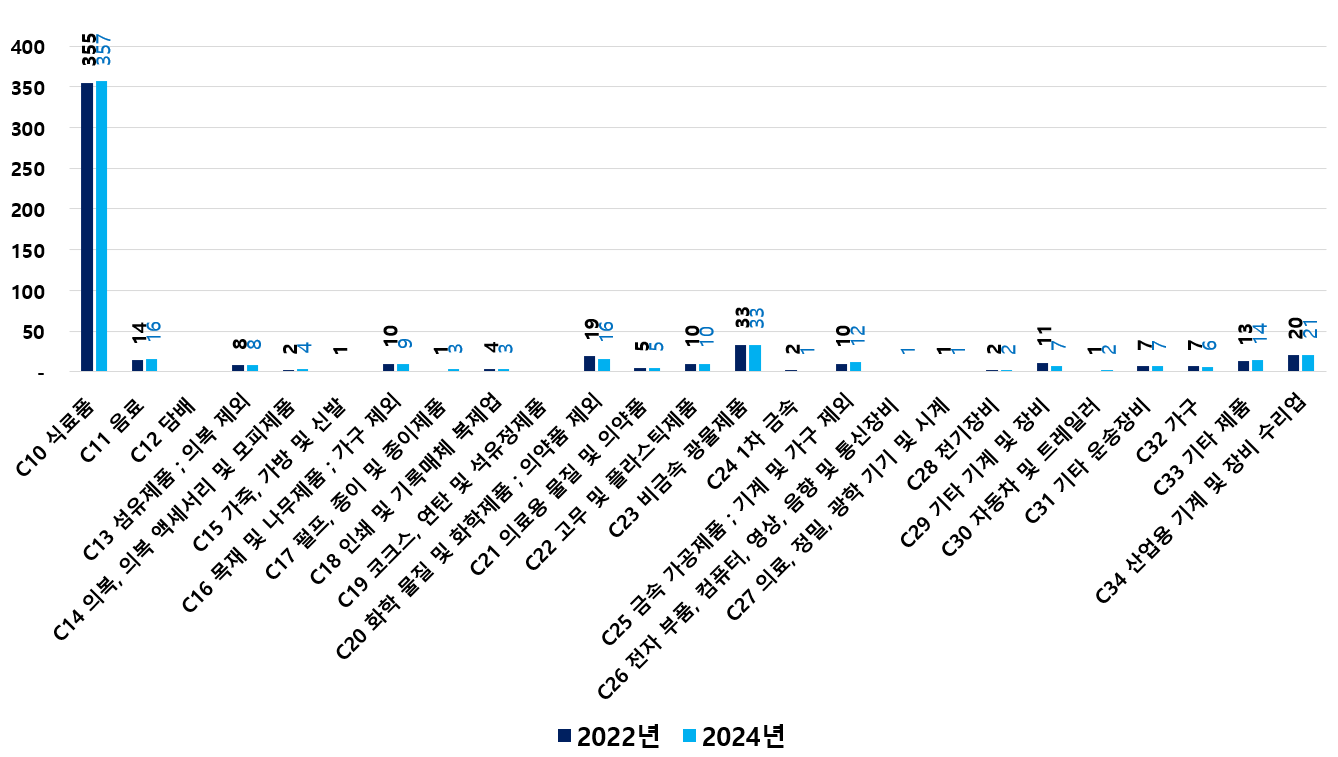 2) 2022 ~ 2024년 업종별 제조사업체 현황