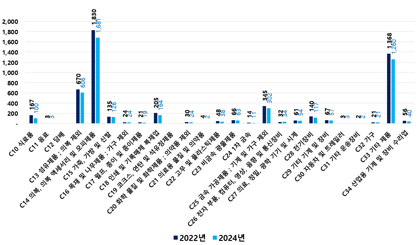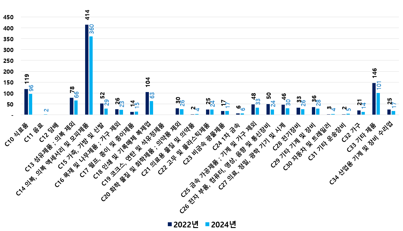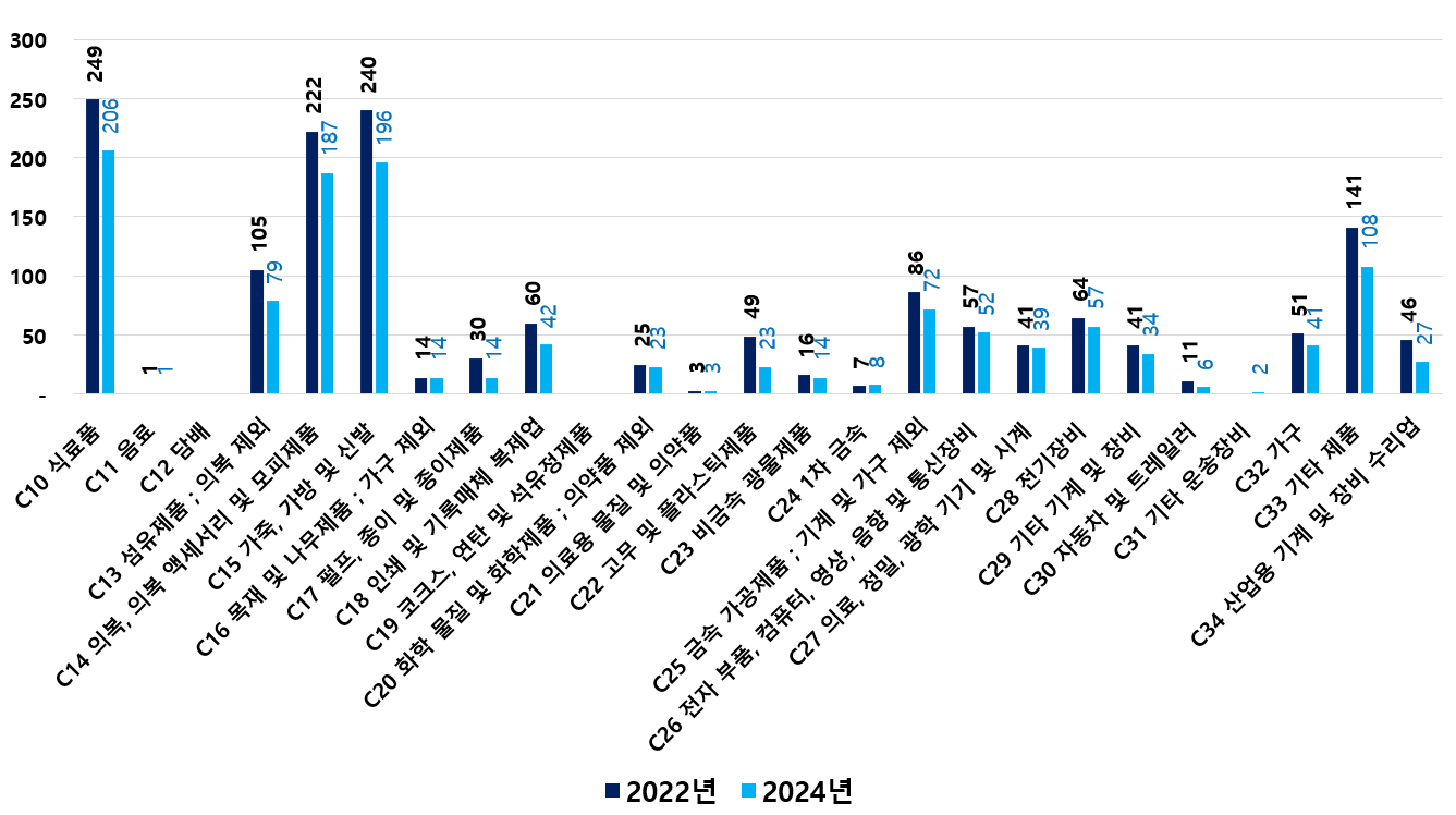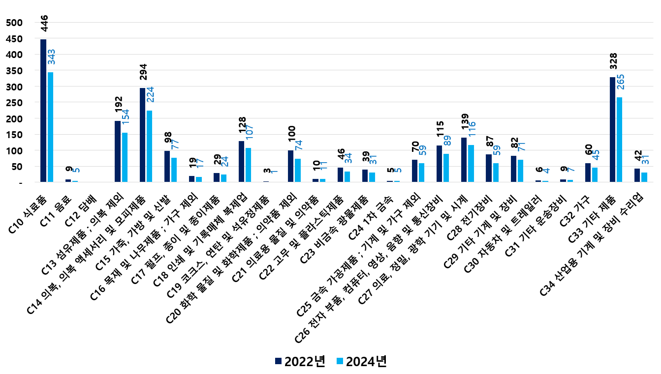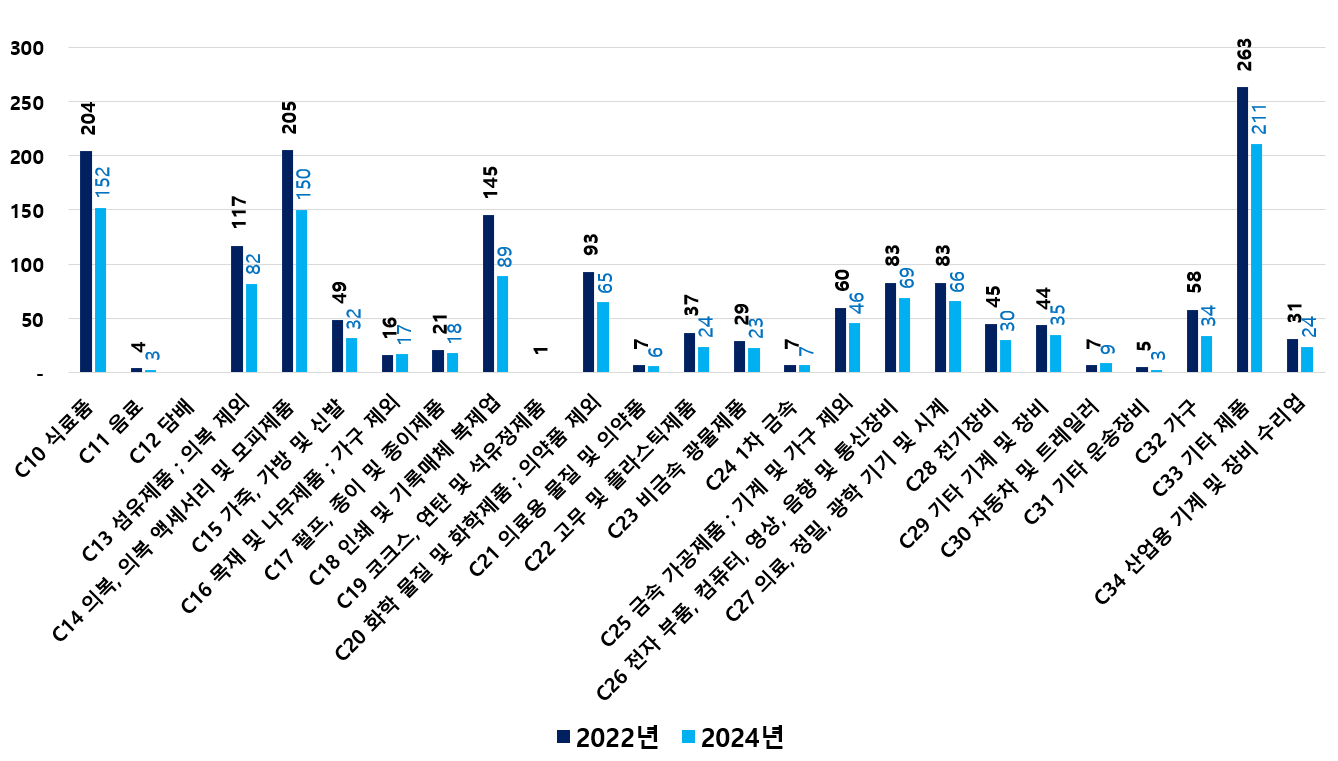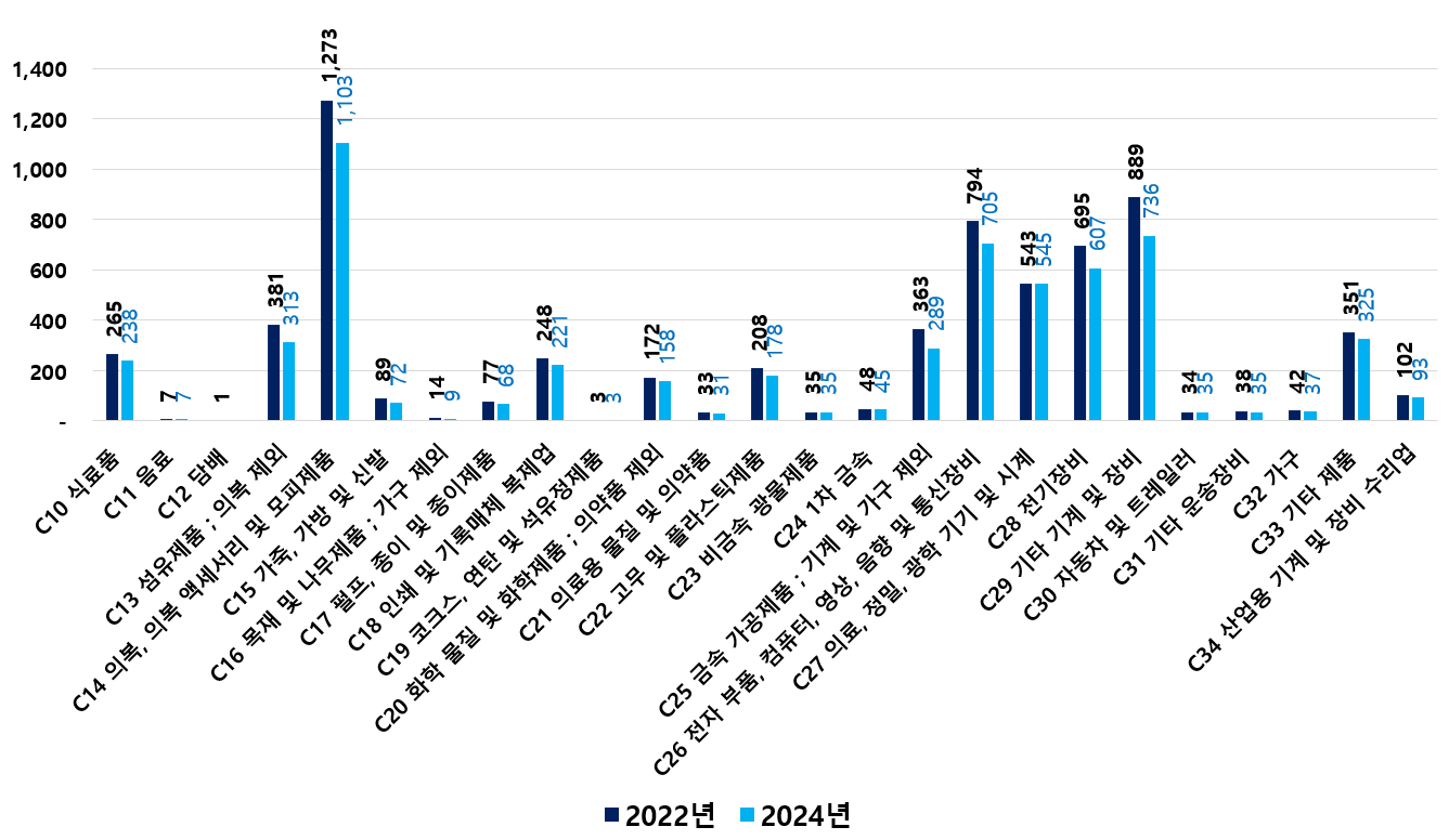 2) 2022 ~ 2024년 업종별 제조사업체 현황