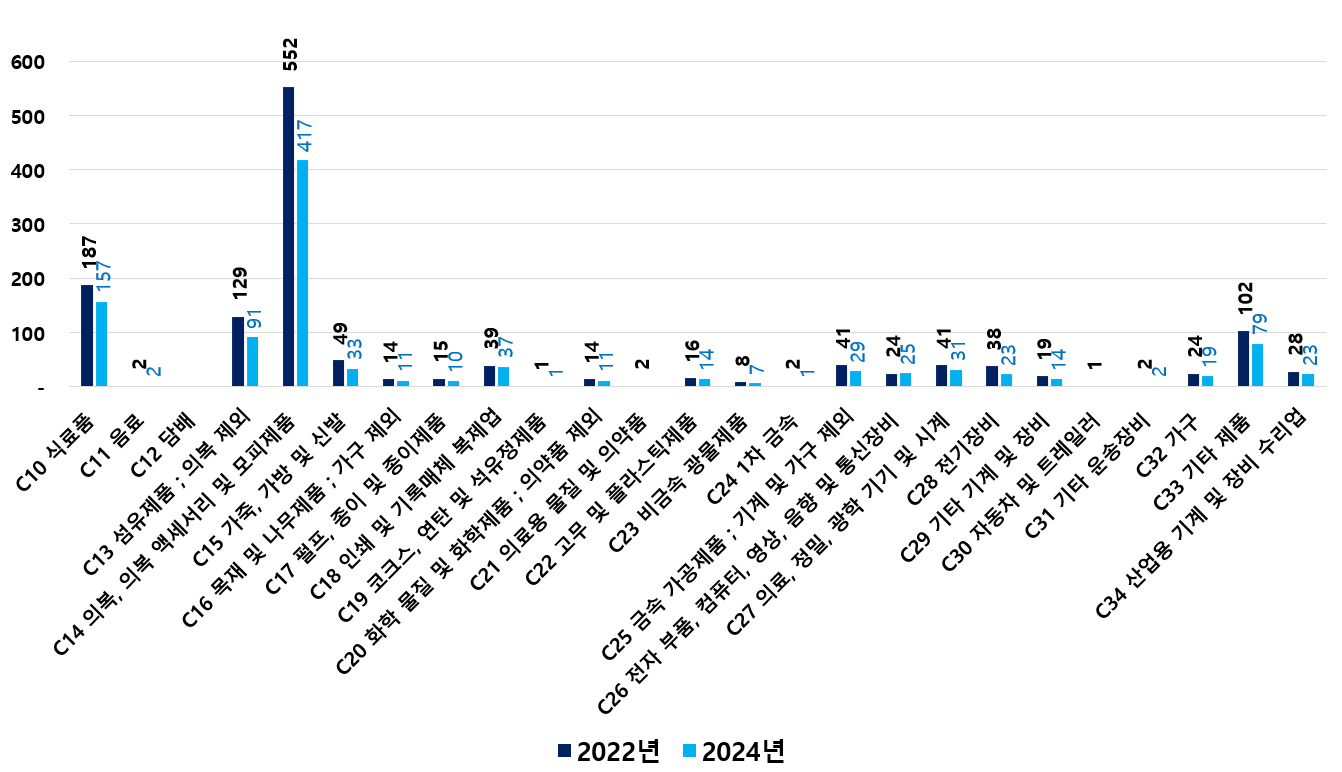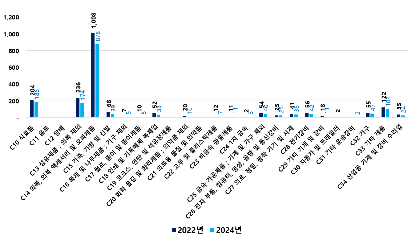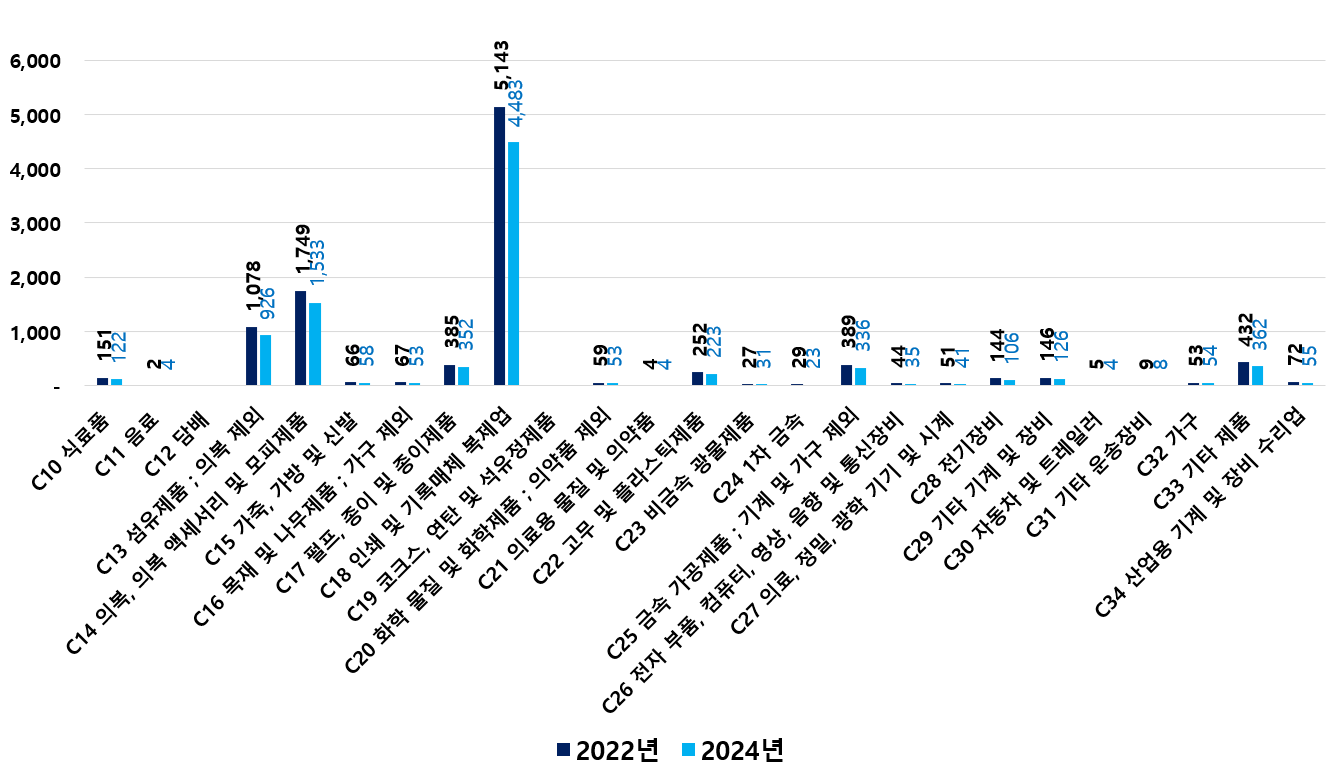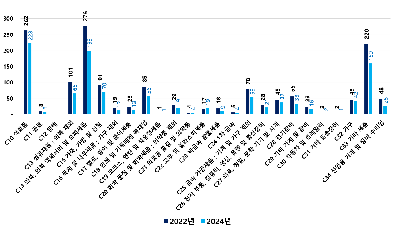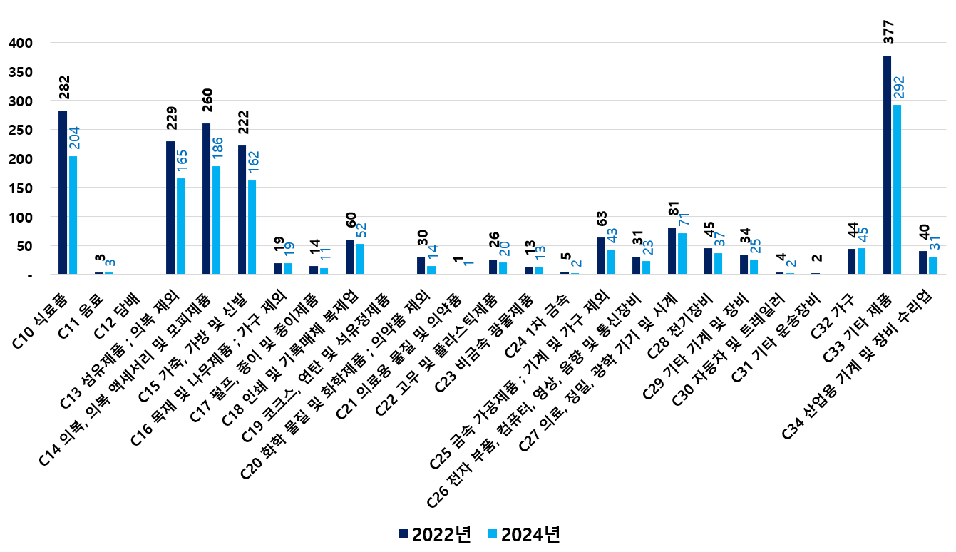 2) 2022 ~ 2024년 업종별 제조사업체 현황
