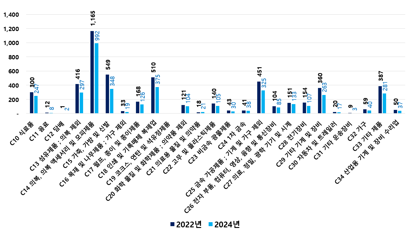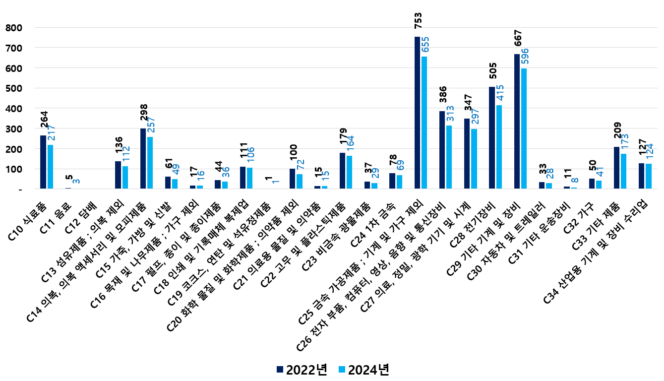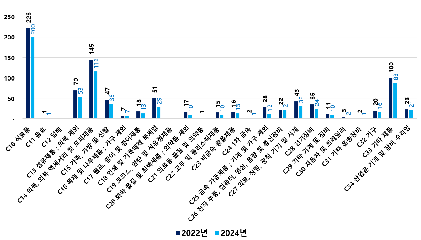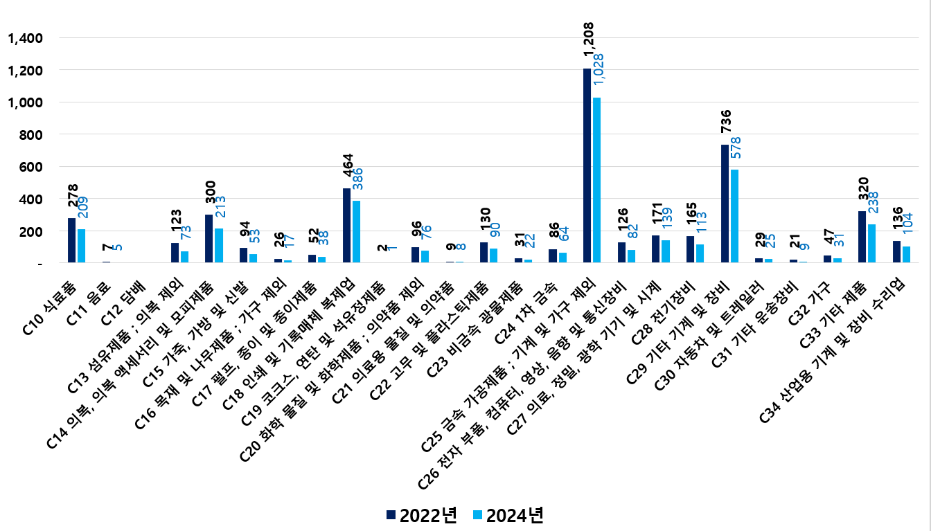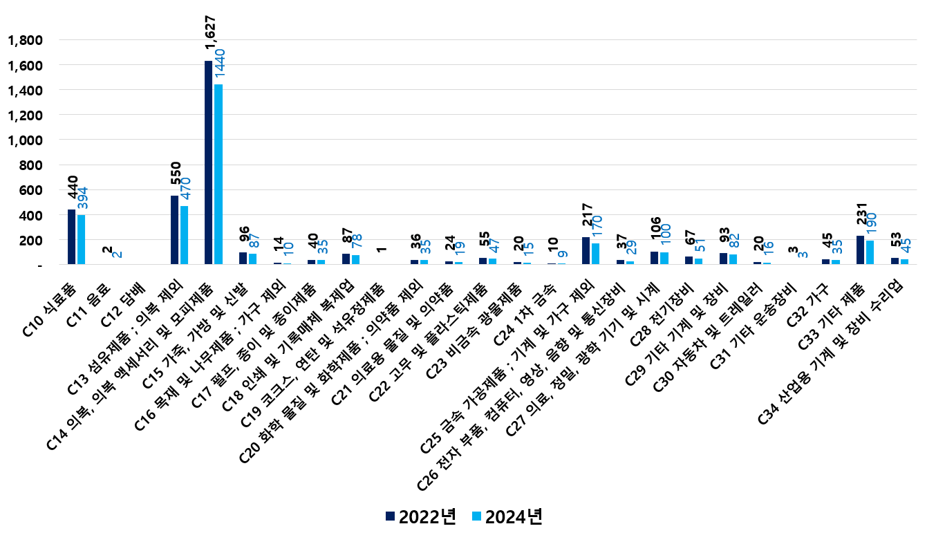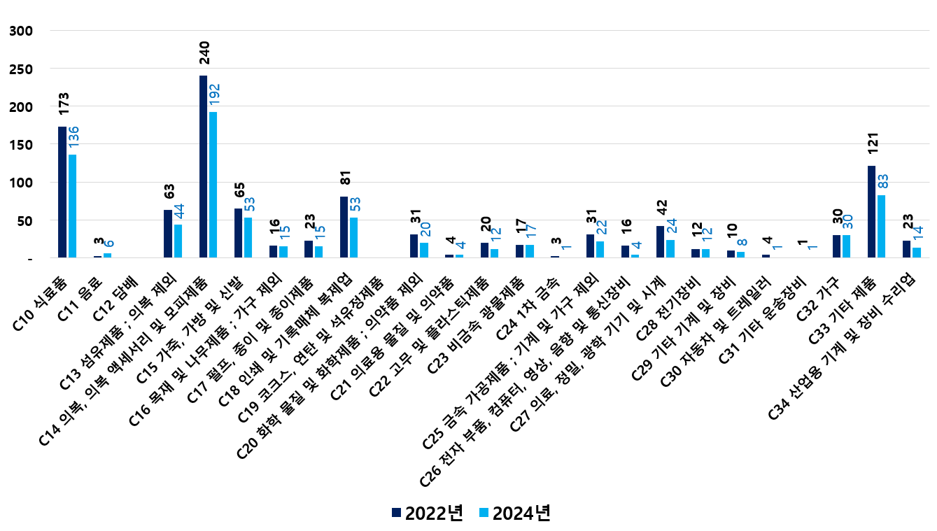 2) 2022 ~ 2024년 업종별 제조사업체 현황