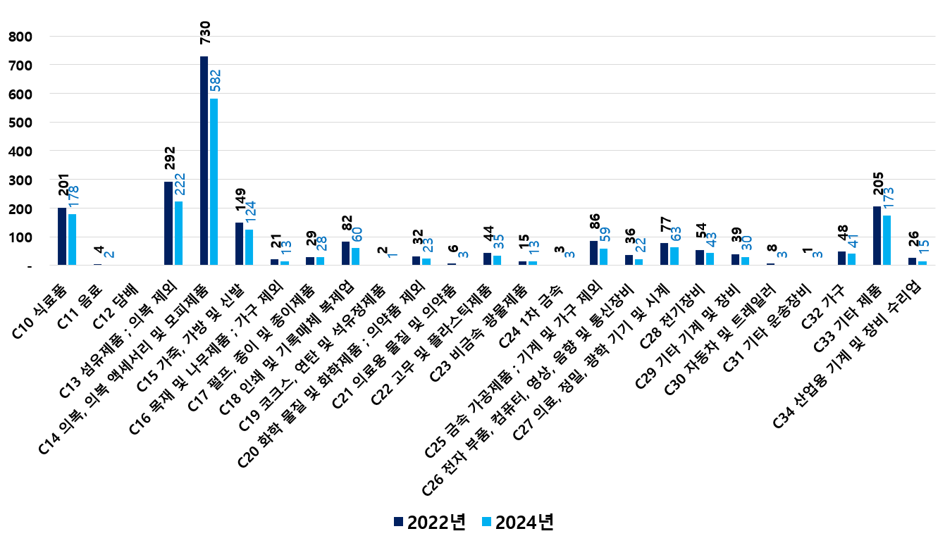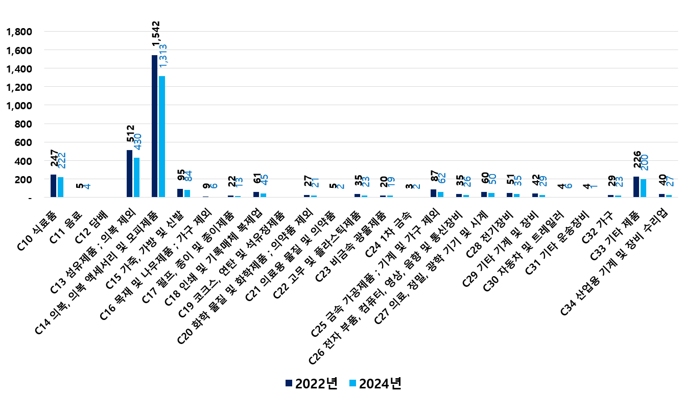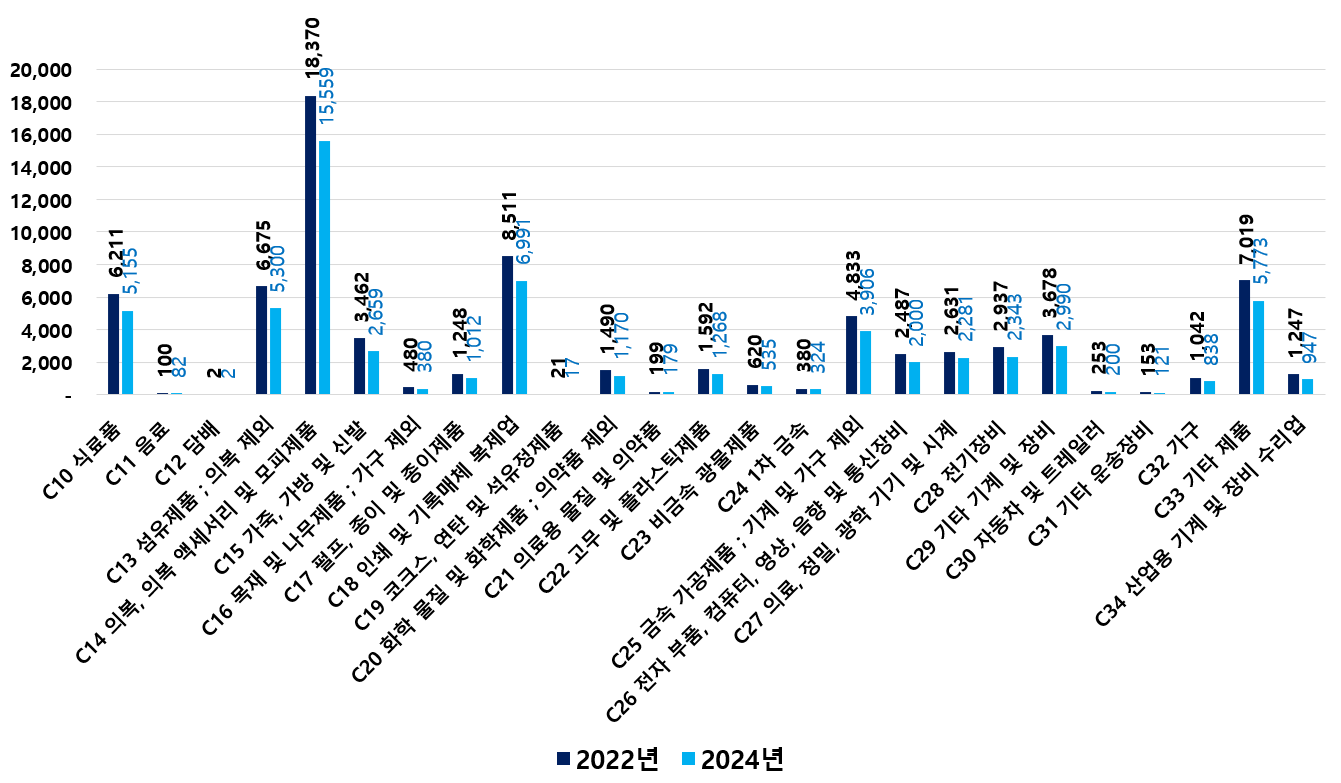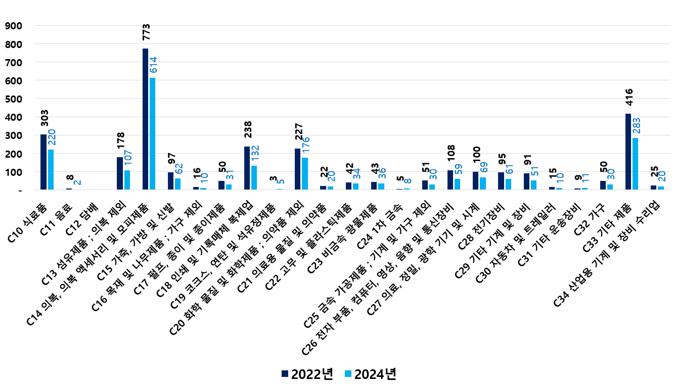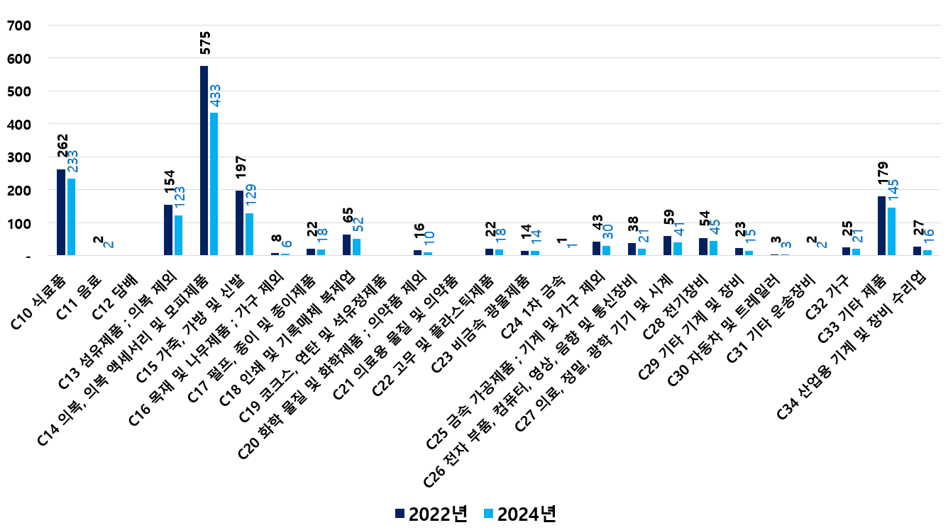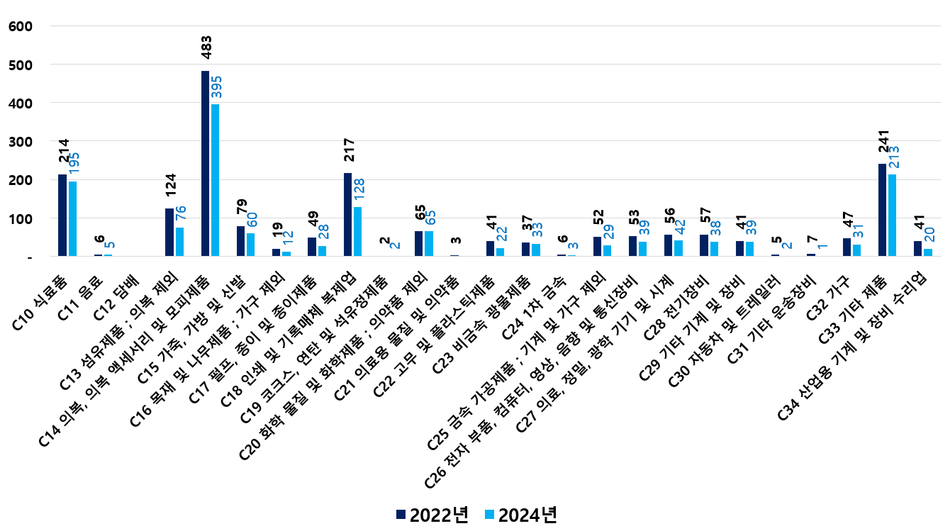 2) 2022 ~ 2024년 업종별 제조사업체 현황