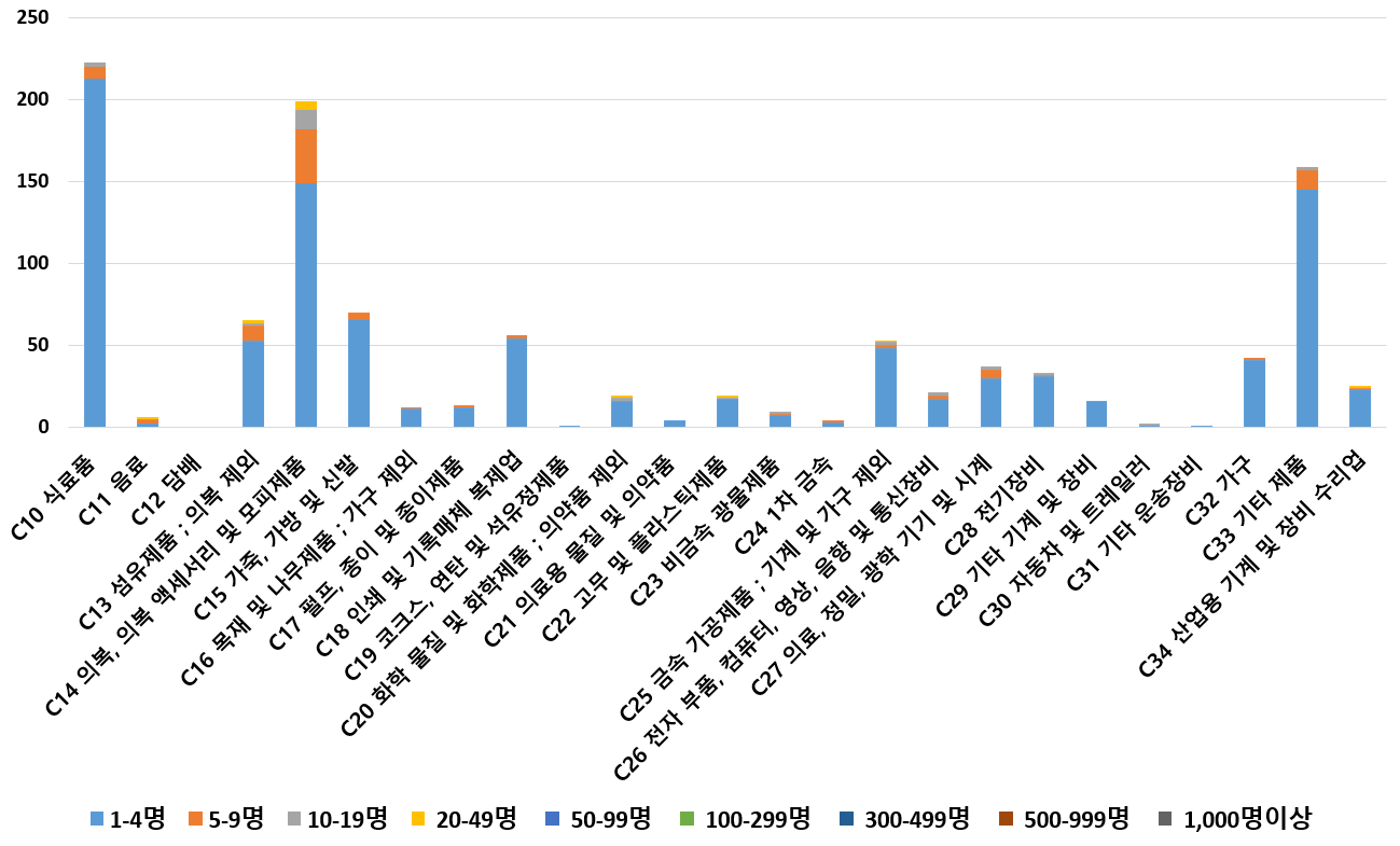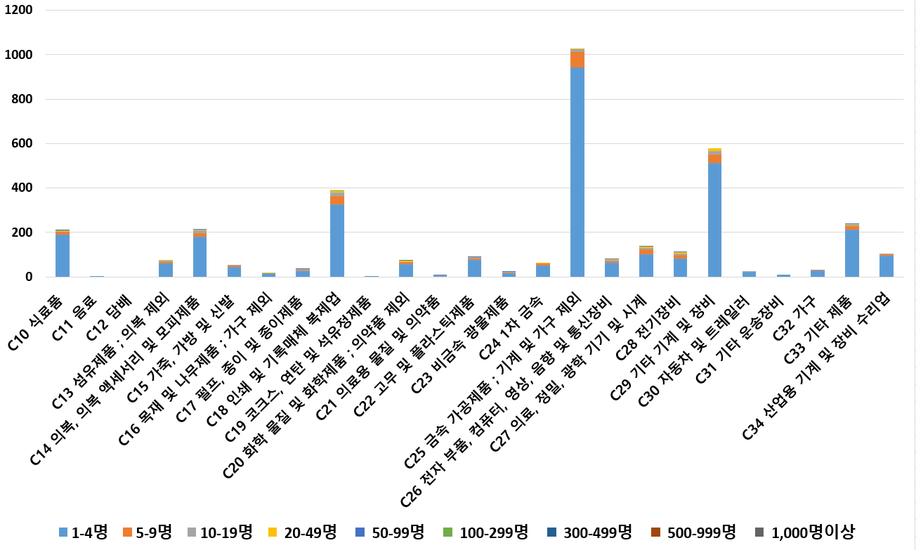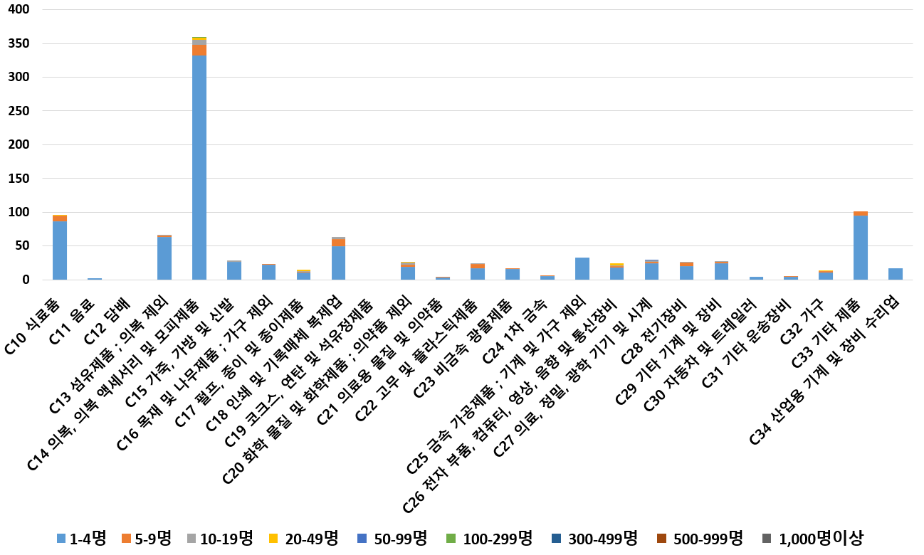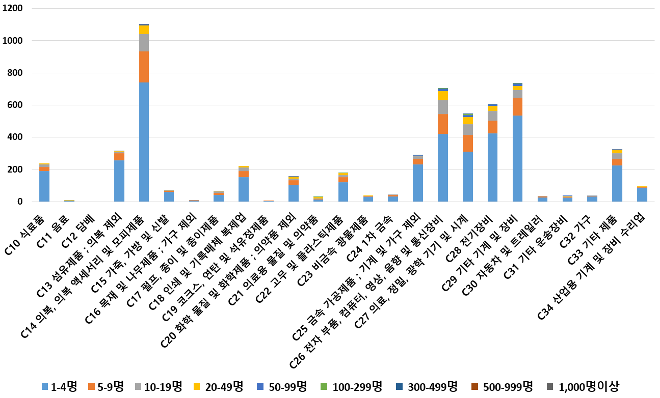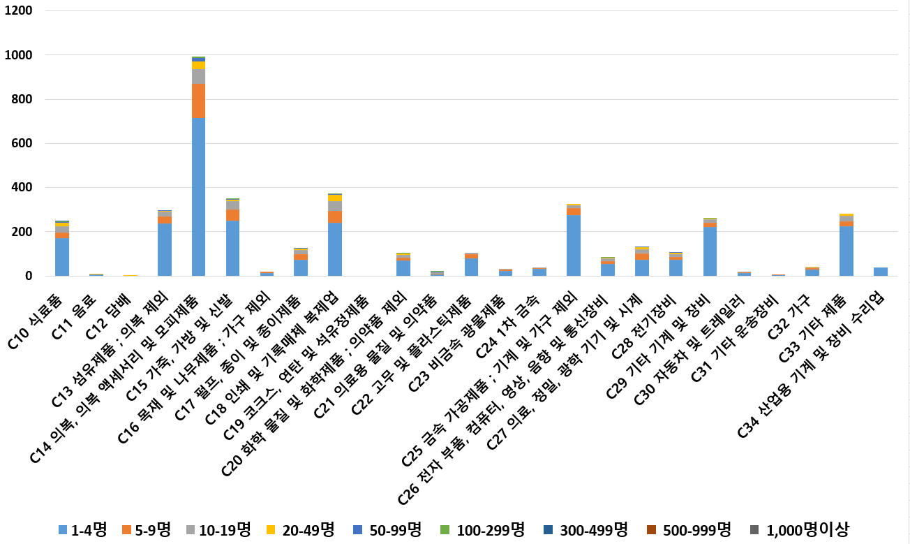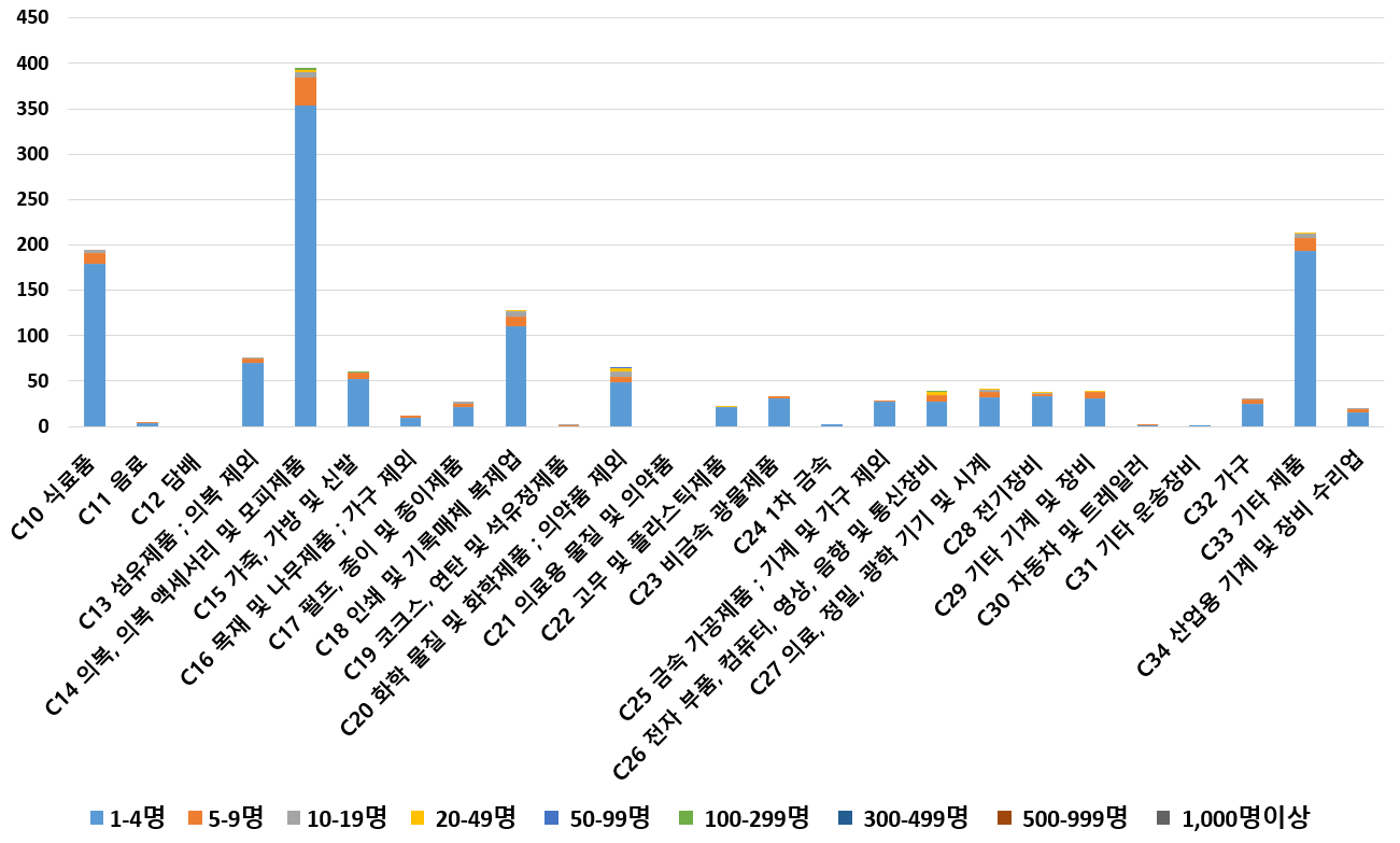 1) 업종별 · 근로자수별 제조사업체 현황