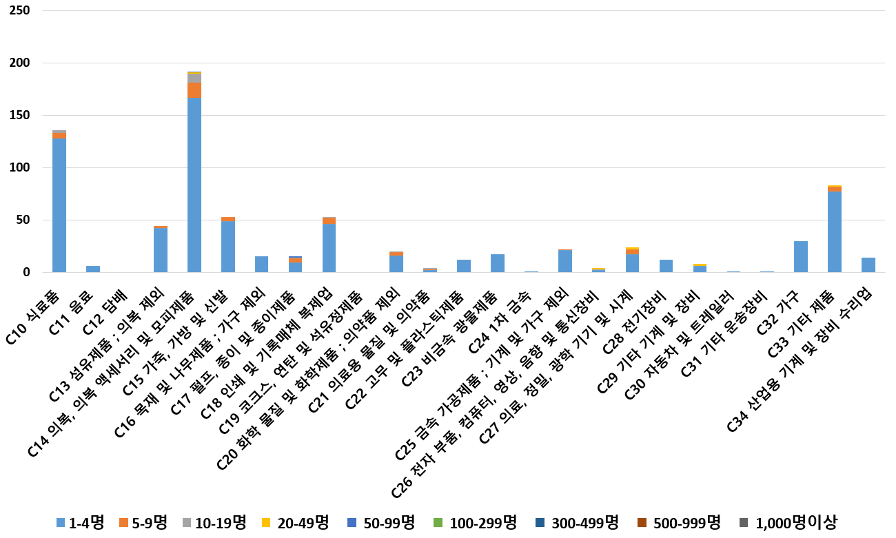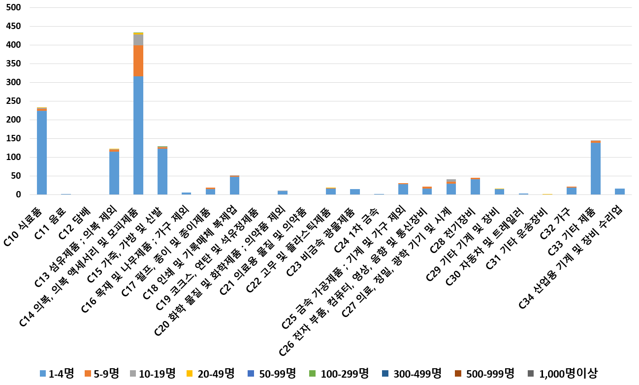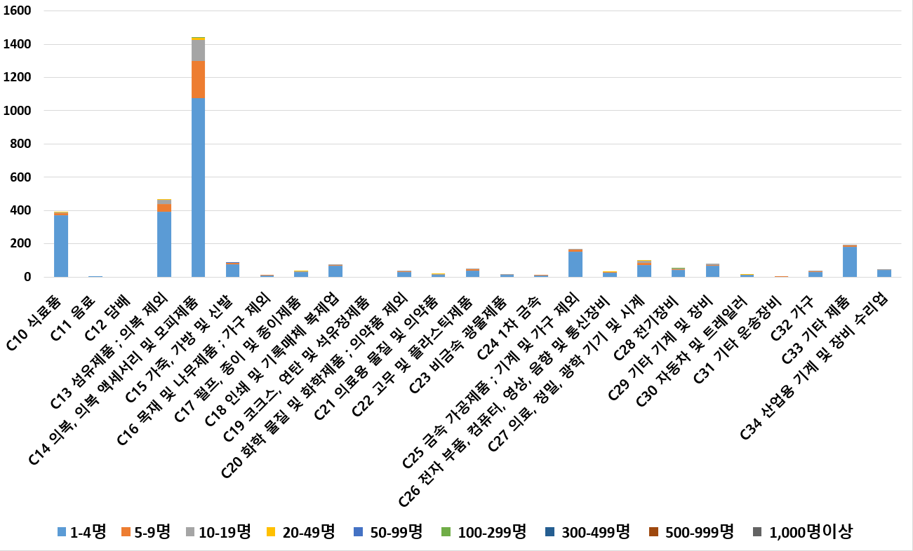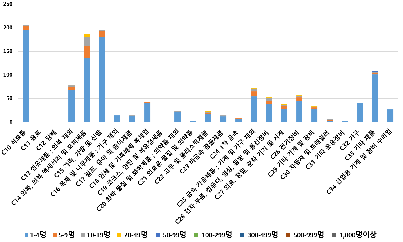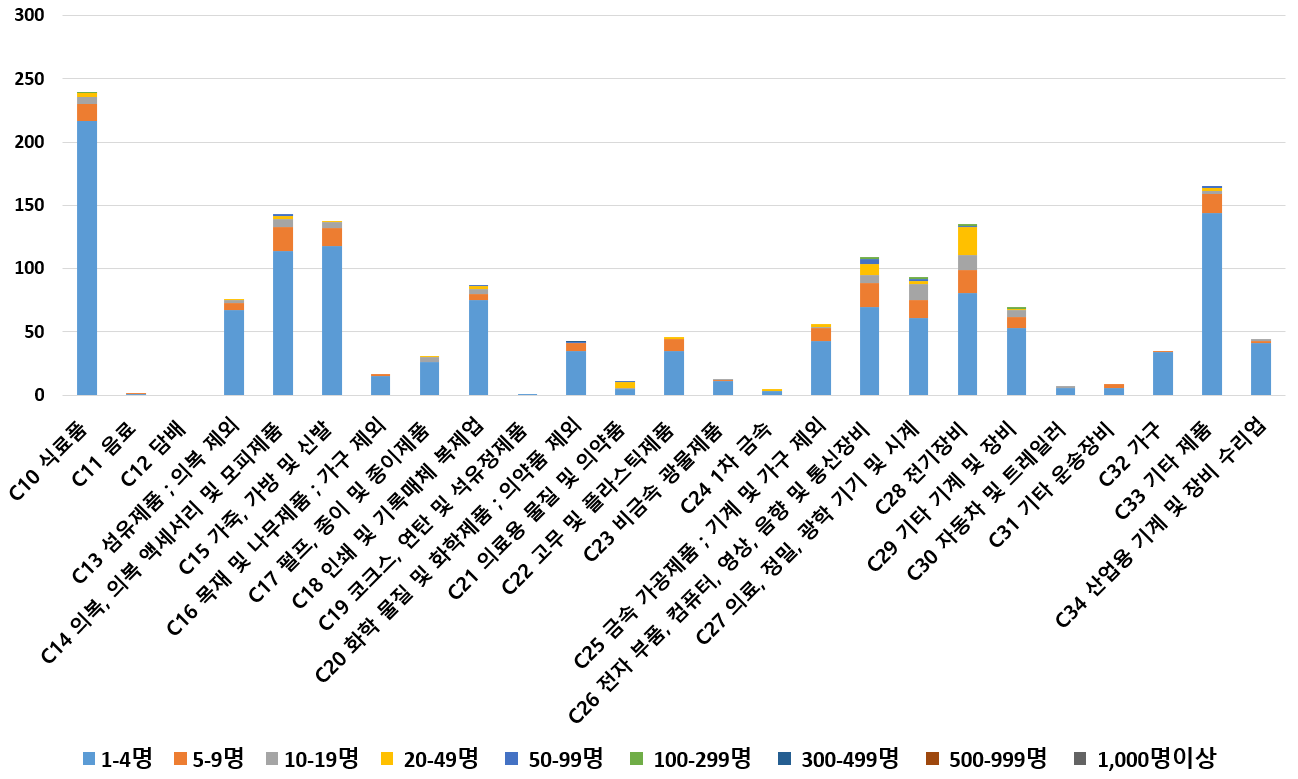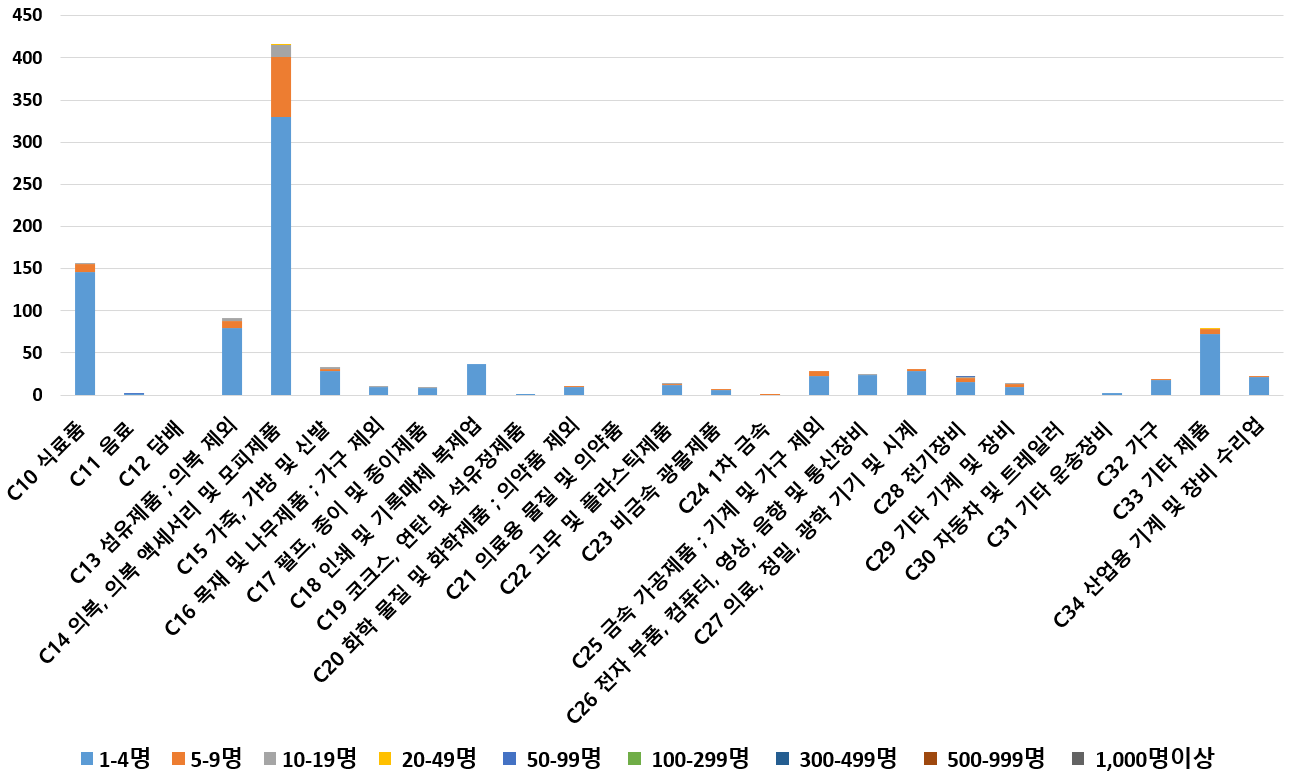 1) 업종별 · 근로자수별 제조사업체 현황