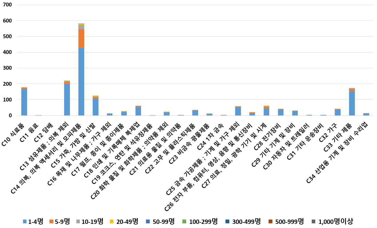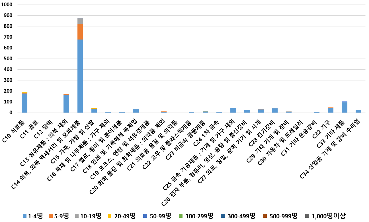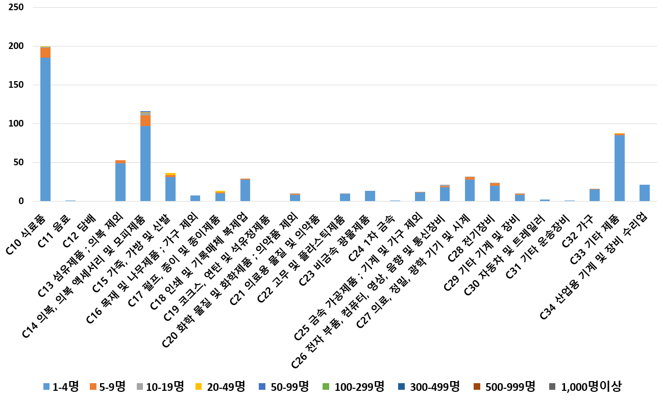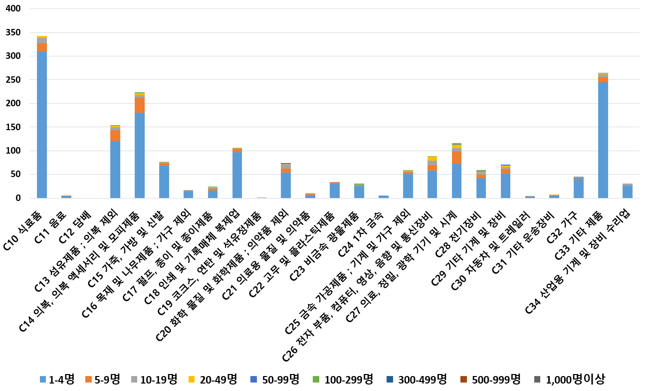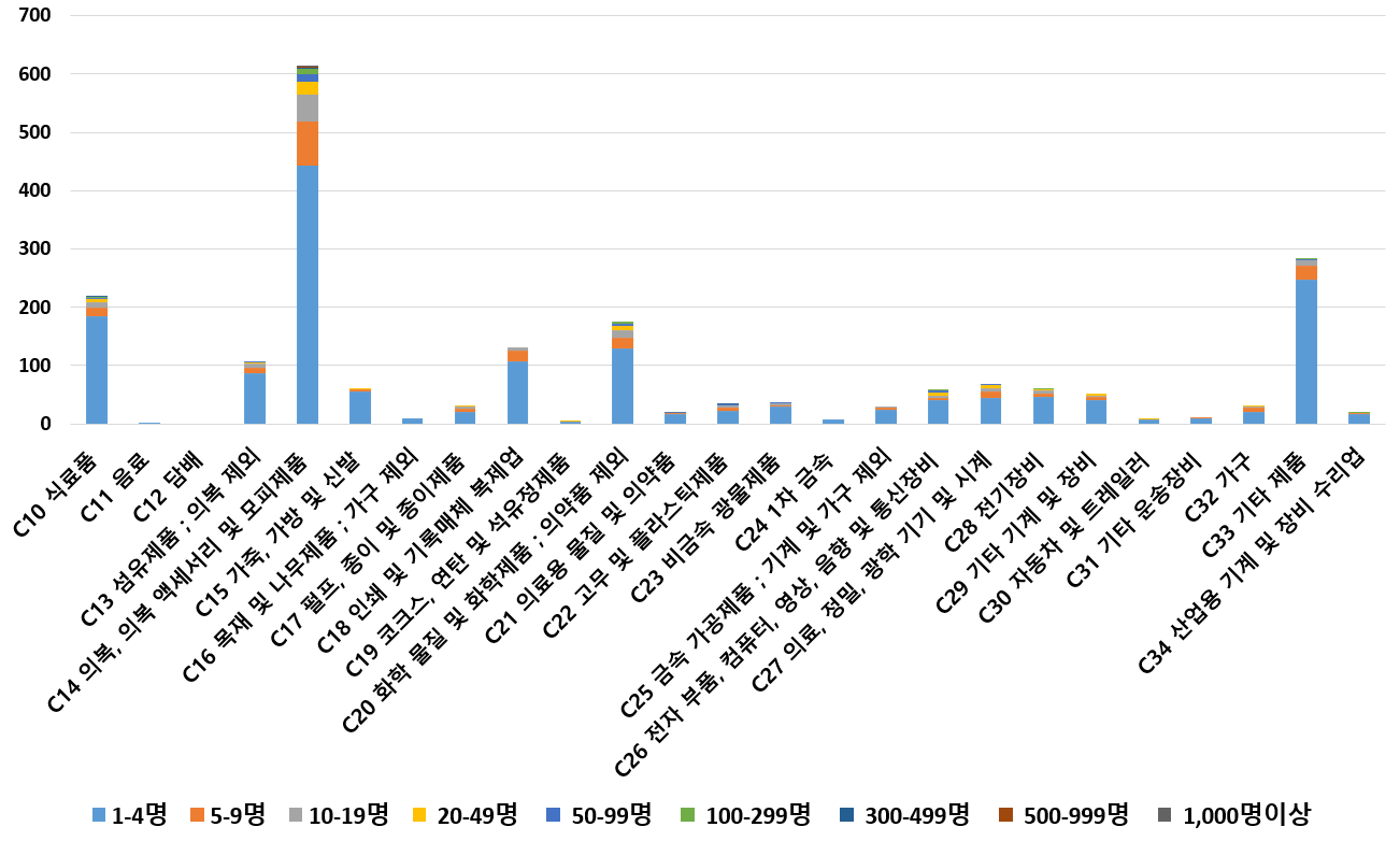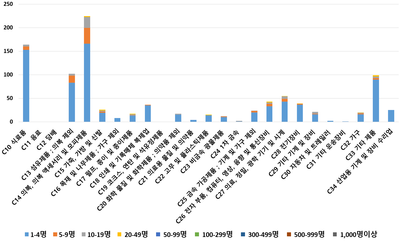1) 업종별 · 근로자수별 제조사업체 현황
