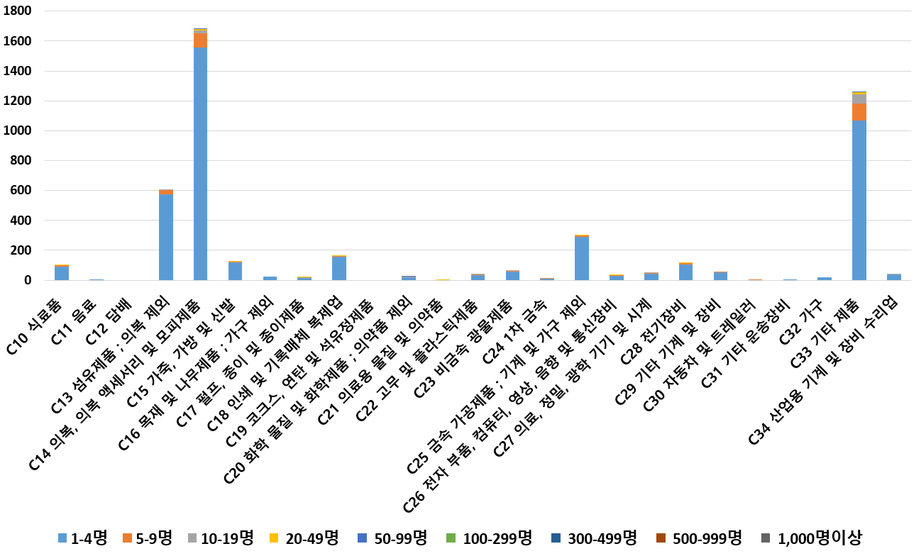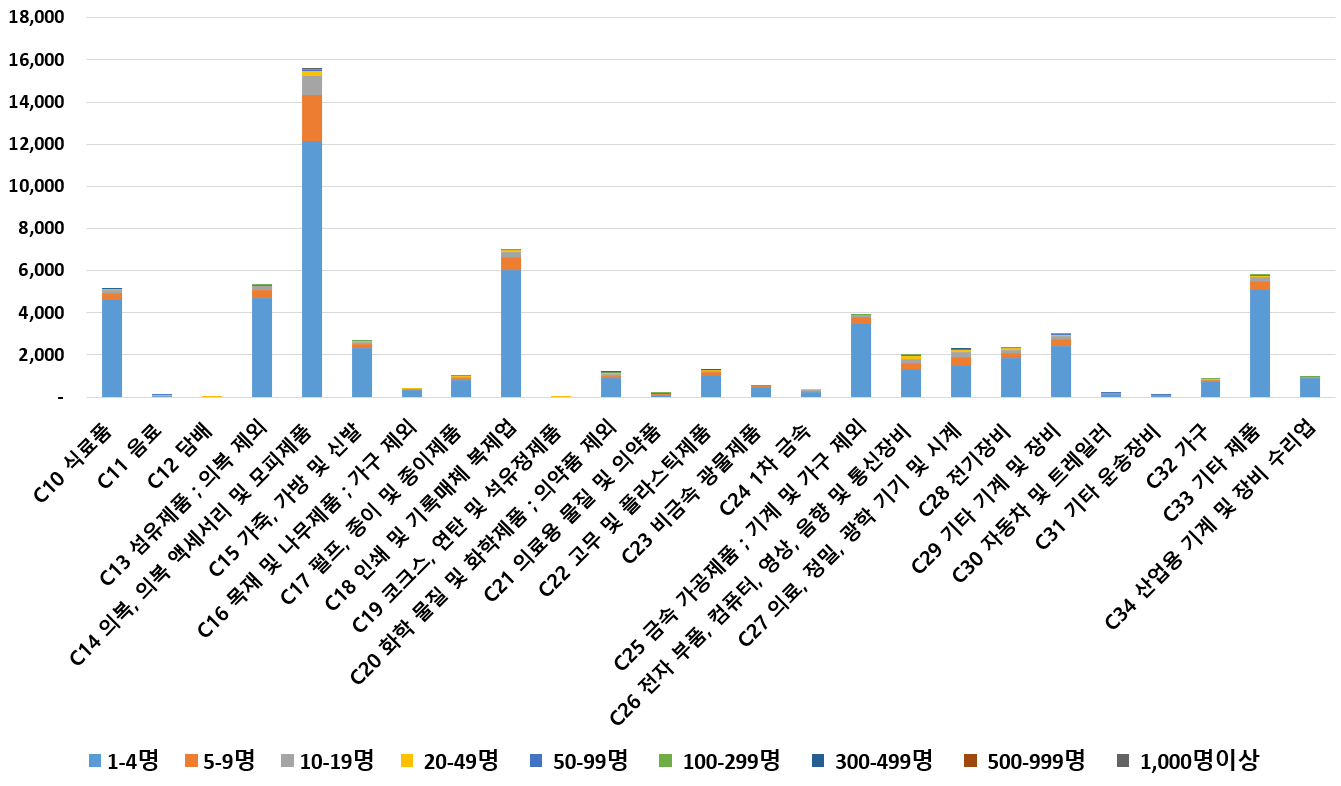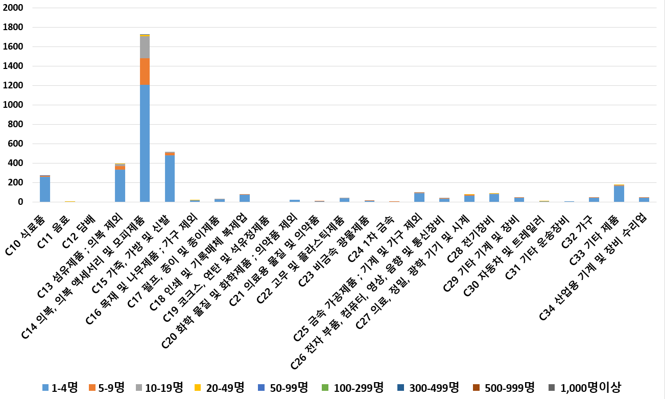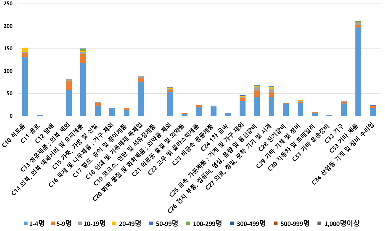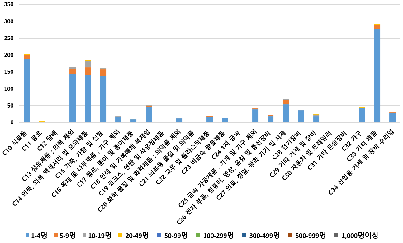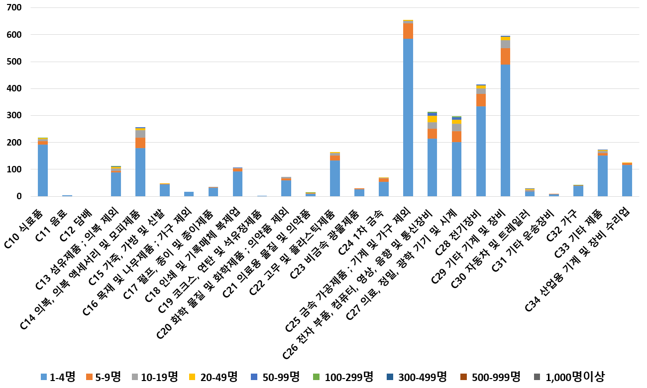 1) 업종별 · 근로자수별 제조사업체 현황