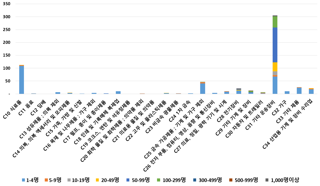 *** 참고로 한국표준산업분류 세세분류(5자리 숫자 코드, 가장 하위 카테고리) 기준으로 모든 업종은 1,205개이며, 이 중 제조업으로 분류된 업종은 480개임. 전체 업종 분류 개수의 39.8%에 달하며, 이는 다양한 산업이 '제조업'이라는 카테고리로 분류됨을 의미함. 그렇기에 여수 중화학 공장과 같은 제조업도 있는 반면에 반찬 · 도시락 제조, 인쇄소, 철공소(보통 수리업 겸업) 등과 같이 도심 유지에 밀접한 소규모 제조 산업도 많음. 따라서 각 제조 산업별 · 규모별로 도심 내외에 적합게 배치하는 것이 필요하며, 특정 제조 산업이 전체 제조 산업으로 비춰지게 하는 것은 바람직하지 않음. 예로 '제조업은 고위험군 환경 유해 물질을 배출하므로 도심 밖에 배치해야 한다'는 주장은 제조 산업의 다양성에 대한 이해 부족에 기인하며, 이와 같은 주장은 모든 제조업에 대한 부정적 인식을 줄 수 있어 언론 보도 등을 할 때 주의가 필요