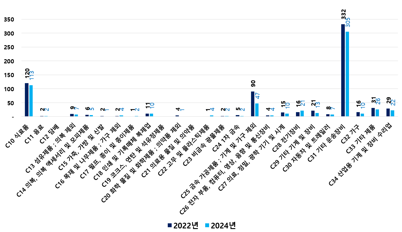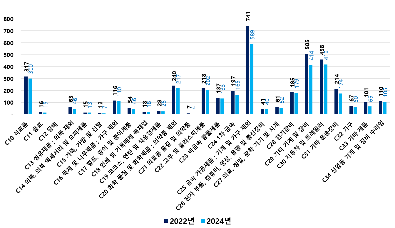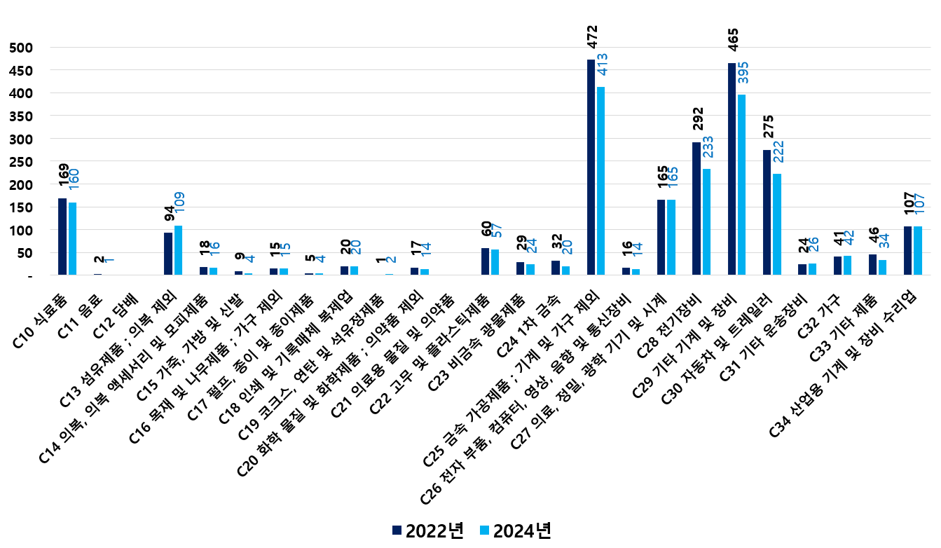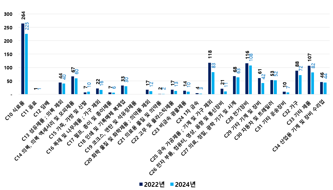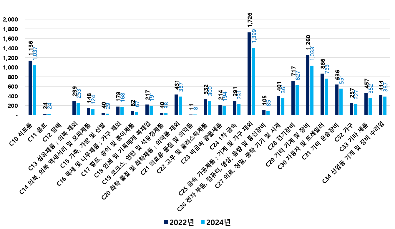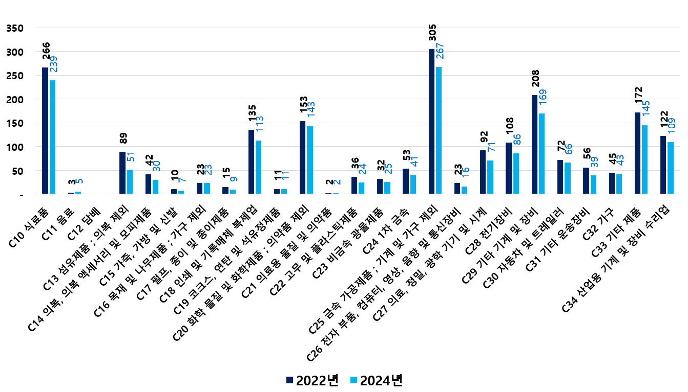 2) 2022 ~ 2024년 업종별 제조사업체 현황