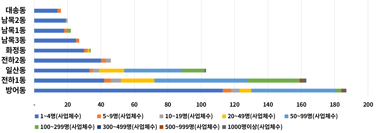 ** 공장 건축물은 분포 현황을 표시하기 위한 용도로 실제보다 크게 표시됨