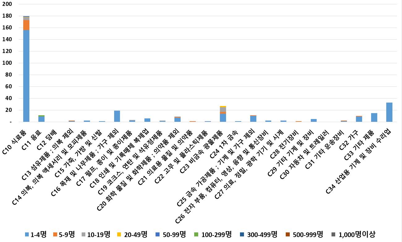 1) 업종별 · 근로자수별 제조사업체 현황