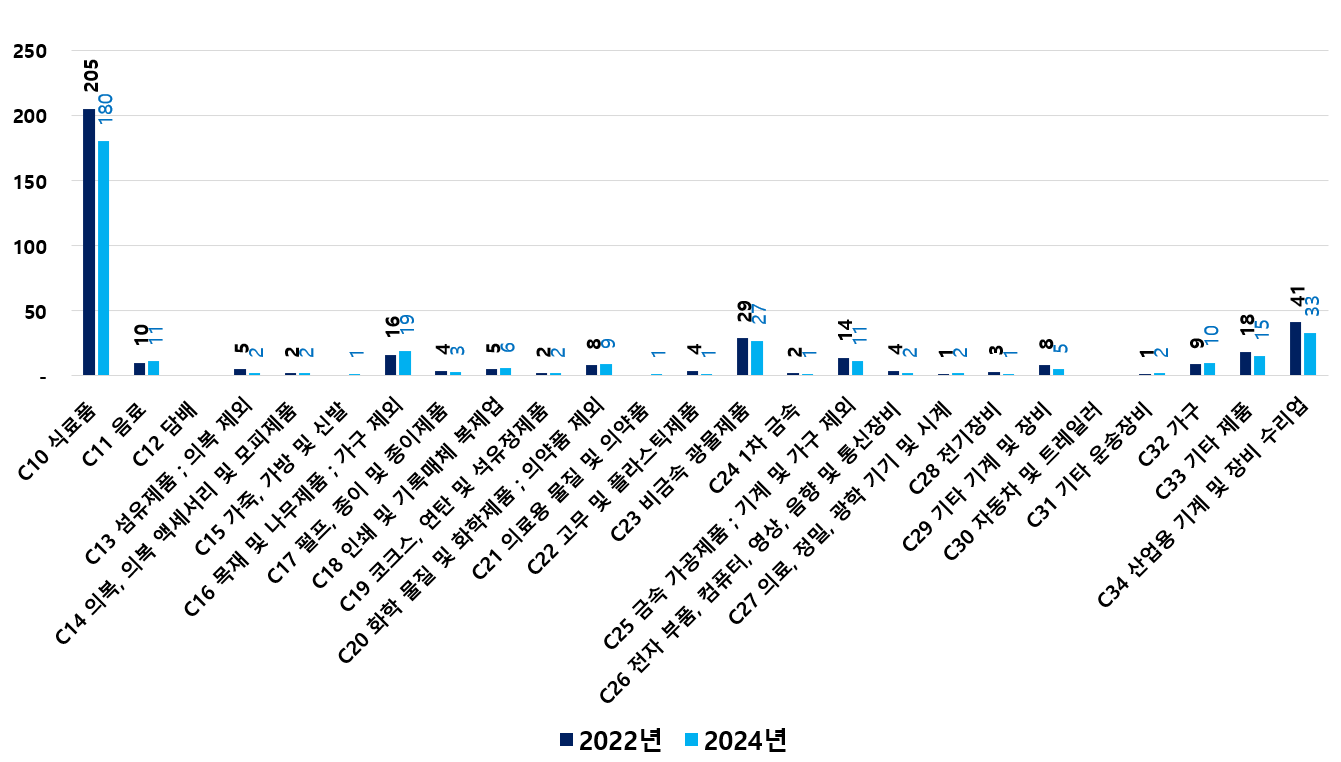 2) 2022 ~ 2024년 업종별 제조사업체 현황