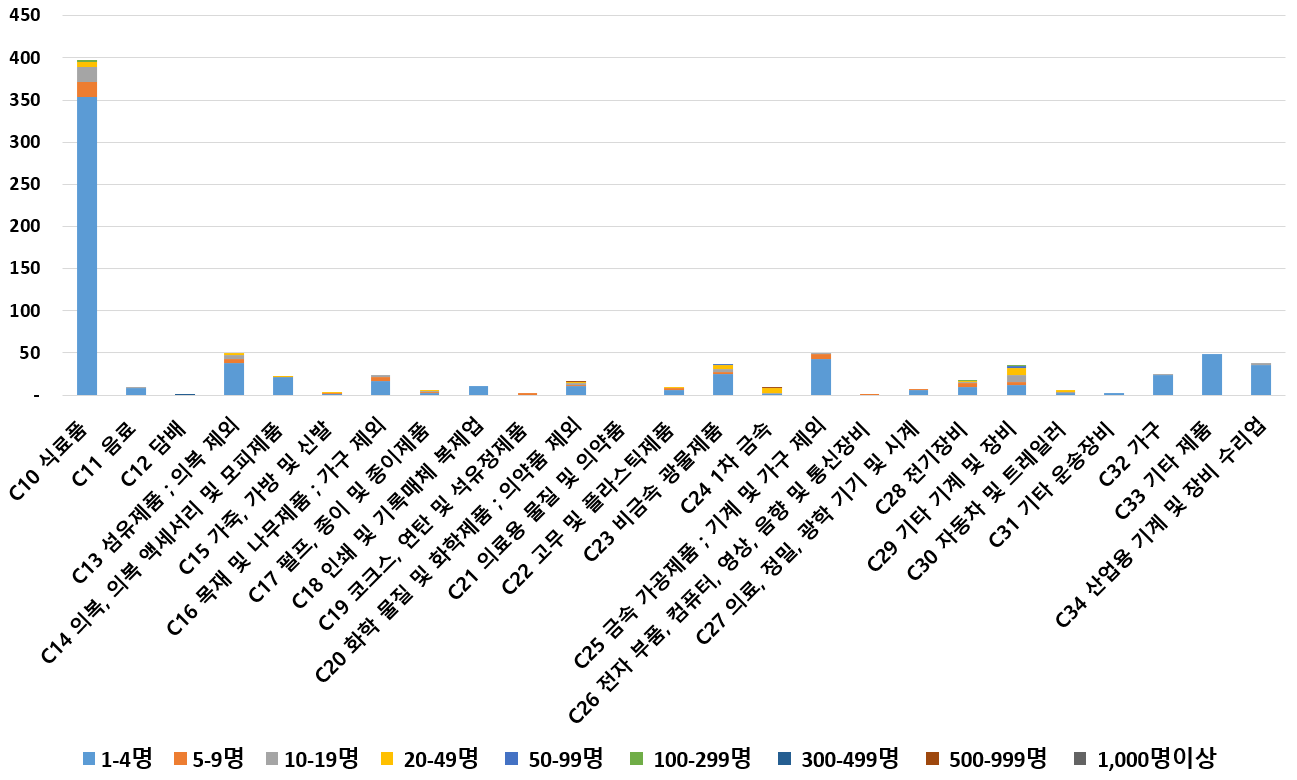 1) 업종별 · 근로자수별 제조사업체 현황
