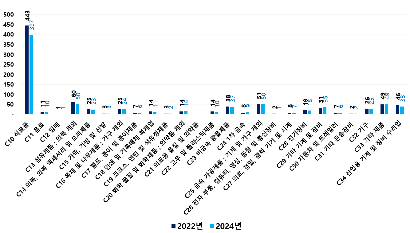 2) 2022 ~ 2024년 업종별 제조사업체 현황