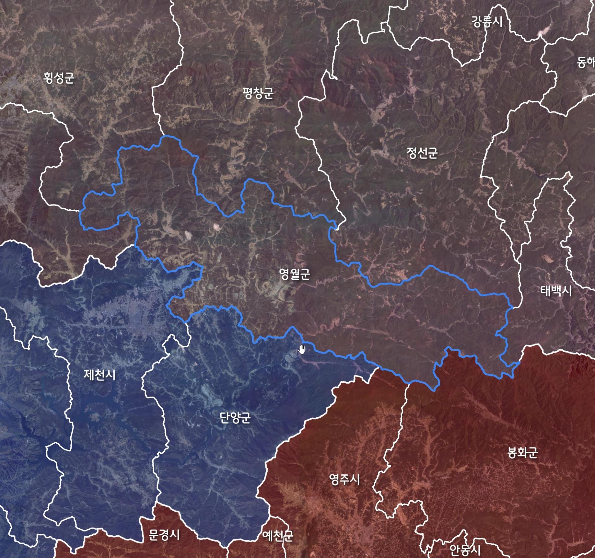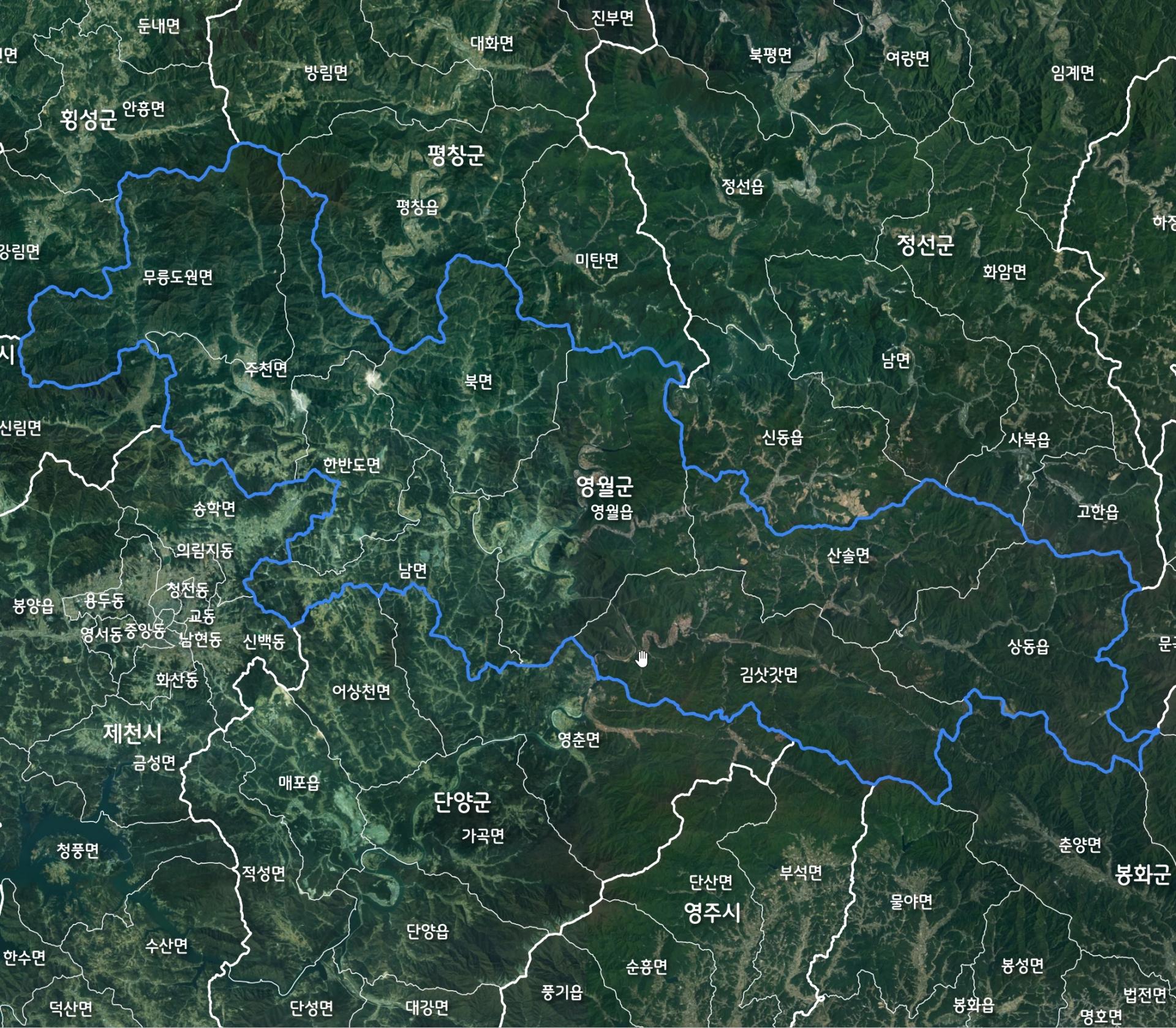 | 서울특별시 ( 605,214 ㎢*) | 강원 영월군 ( 1,127,467 ㎢, 서울 대비 186%) |