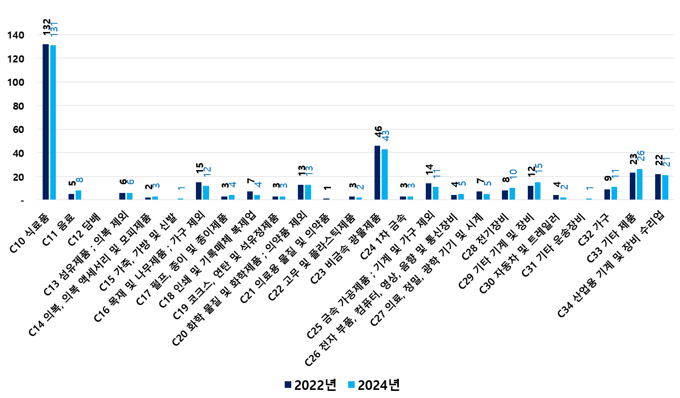 2) 2022 ~ 2024년 업종별 제조사업체 현황