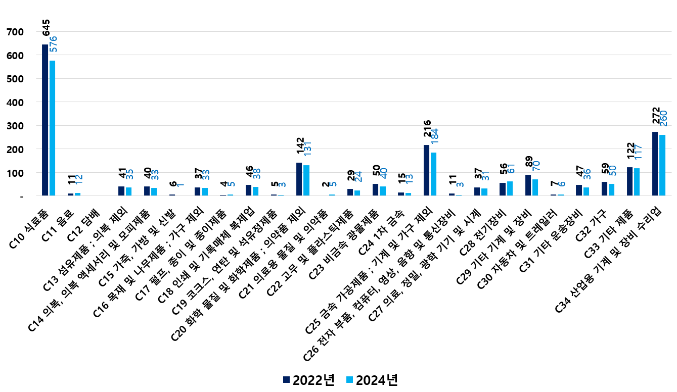 2) 2022 ~ 2024년 업종별 제조사업체 현황