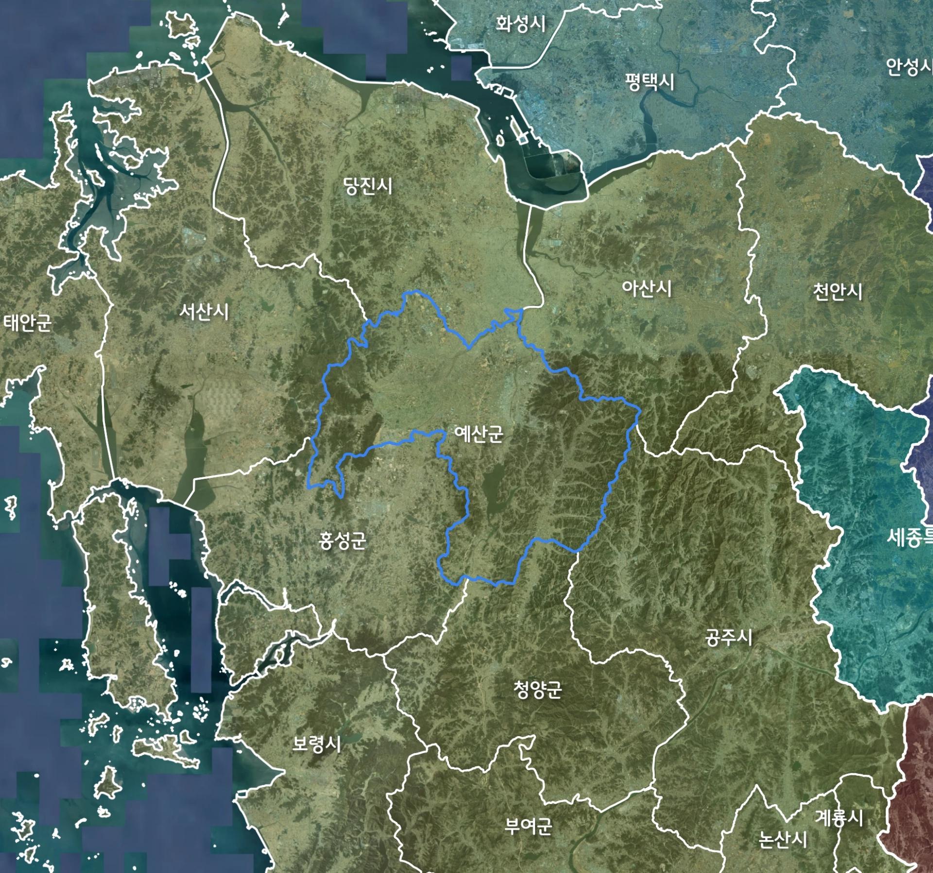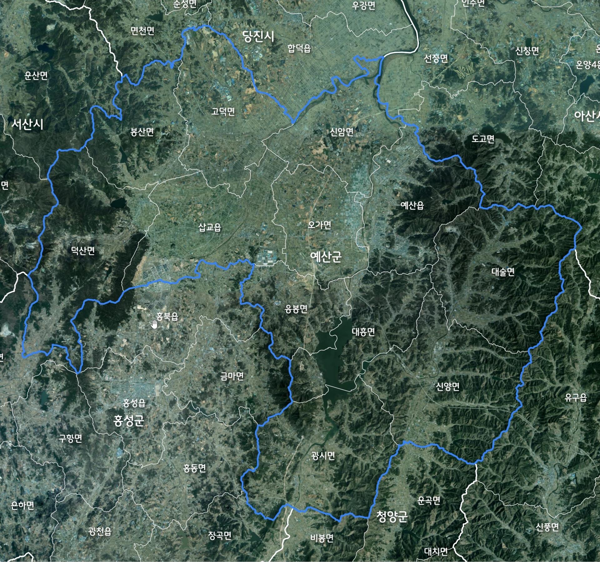 | 서울특별시 ( 605,214 ㎢*) | 충남 예산군 ( 542,717 ㎢, 서울 대비 90%) |