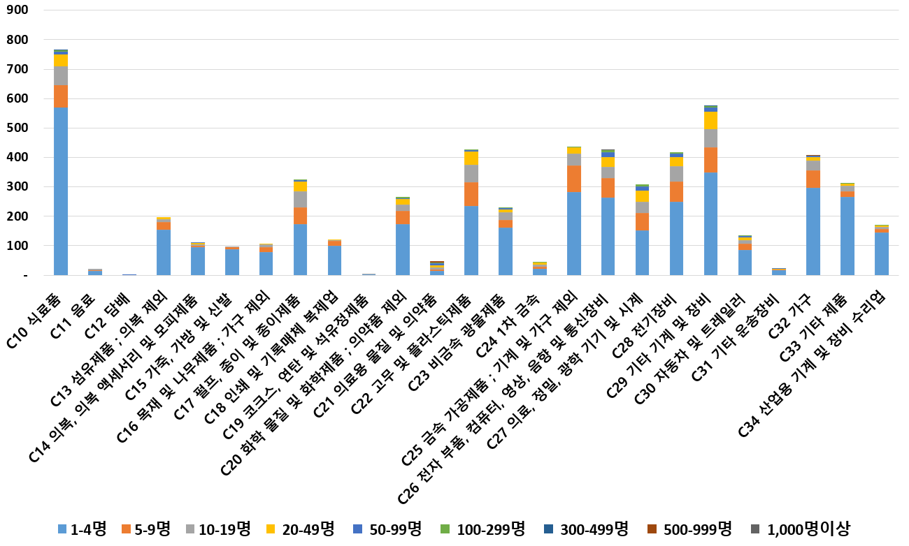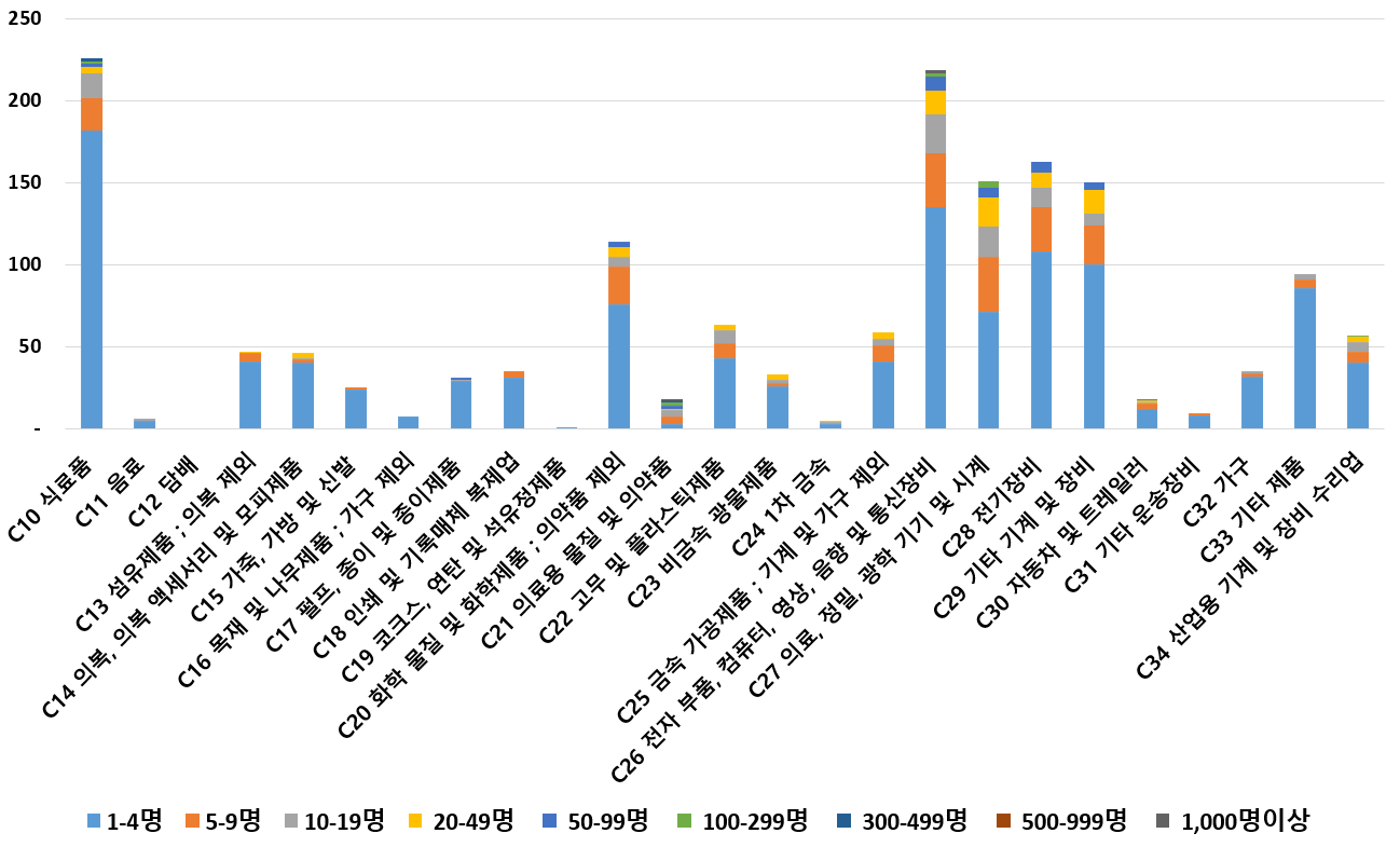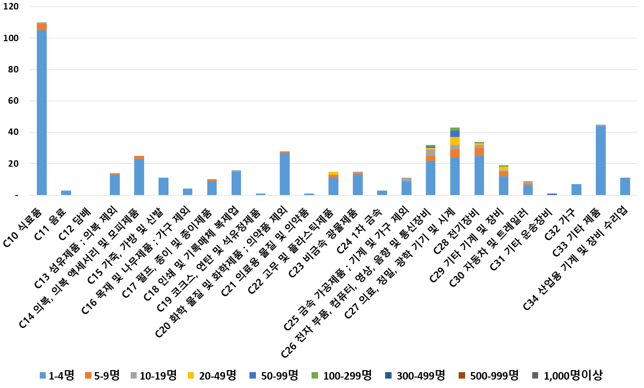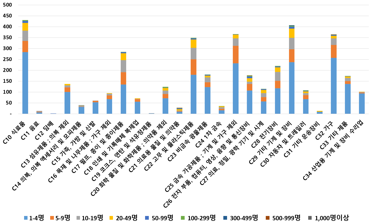 1) 업종별 · 근로자수별 제조사업체 현황