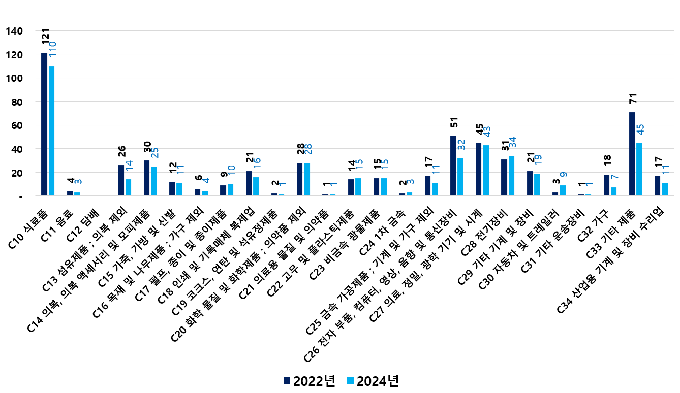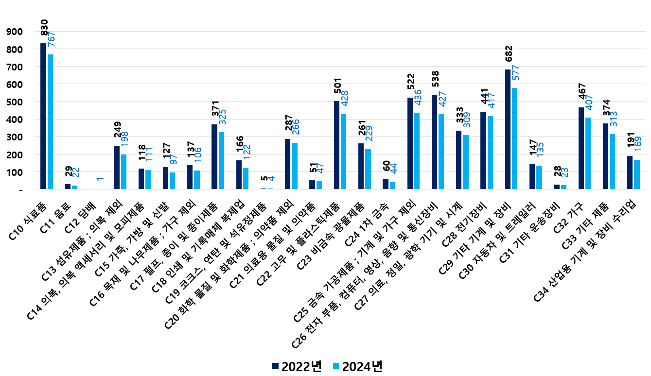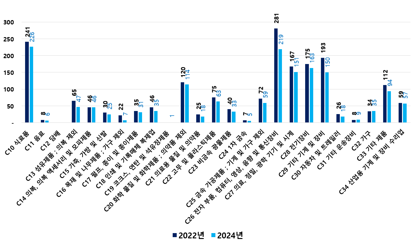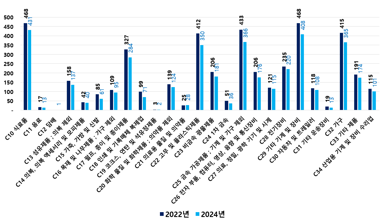 2) 2022 ~ 2024년 업종별 제조사업체 현황