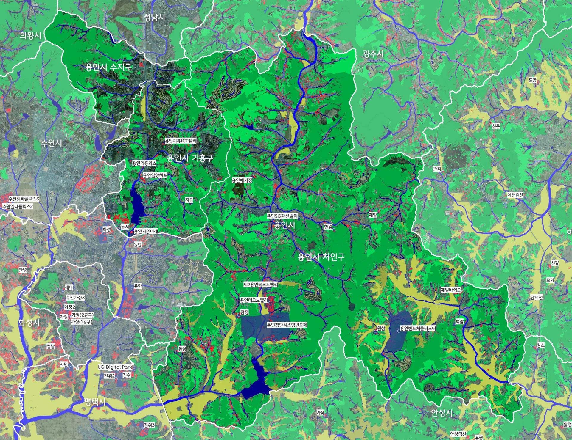 * (참고) 흰색 네모 배경이 있는 글씨는 산업단지임. 새로 지정된 일부 산업단지는 미표시